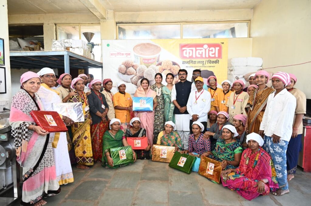 स्नेहलताताई कोल्हे यांनी महिला कामगारांसोबत बनवले तिळाचे लाडू
