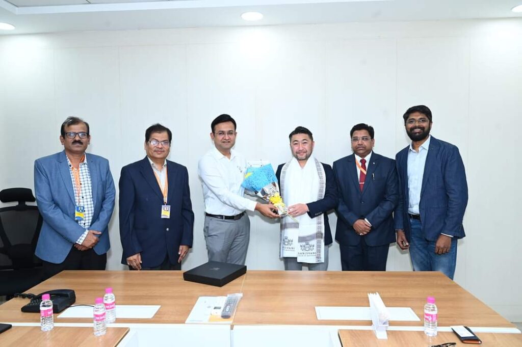 फोटो ओळी: संजीवनी ग्रुप ऑफ इन्स्टिट्यूट्सचे मॅनेजिंग ट्रस्टी श्री अमित कोल्हे यांनी जपान मधिल एशिया टू जपान या कंपनीचे सीओई मसॅतो सॅम्पेई यांनी संजीवनीला भेट दिली असता सत्कार केला. यावेळी डायरेक्टर डॉ. ठाकुर, प्रज्वल चन्नागिरी, डॉ. डी. बी. क्षिरसागर व प्रा. मोकळ उपस्थित होते.