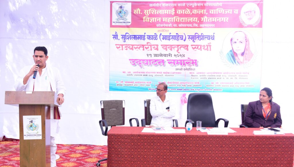 स्व.सौ.सुशीलामाई काळे यांच्या २५ व्या पुण्यस्मरणानिमित्त कर्मवीर शंकरराव काळे एज्युकेशन सोसायटीच्या सौ. सुशिलामाई काळे कला, वाणिज्य व विज्ञान महाविद्यालयात ऑनलाईन ‘राज्यस्तरीय वक्तृत्व स्पर्धेचे’ उदघाटन प्रसंगी आ. आशुतोष काळे बोलत होते.