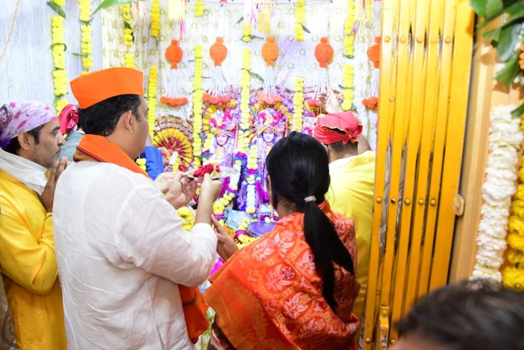 फोटो ओळ- कोपरगाव शहरातील श्रीराम मंदिरात सपत्नीक महाआरती करतांना आ.आशुतोष काळे व सौ. चैतालीताई काळे.