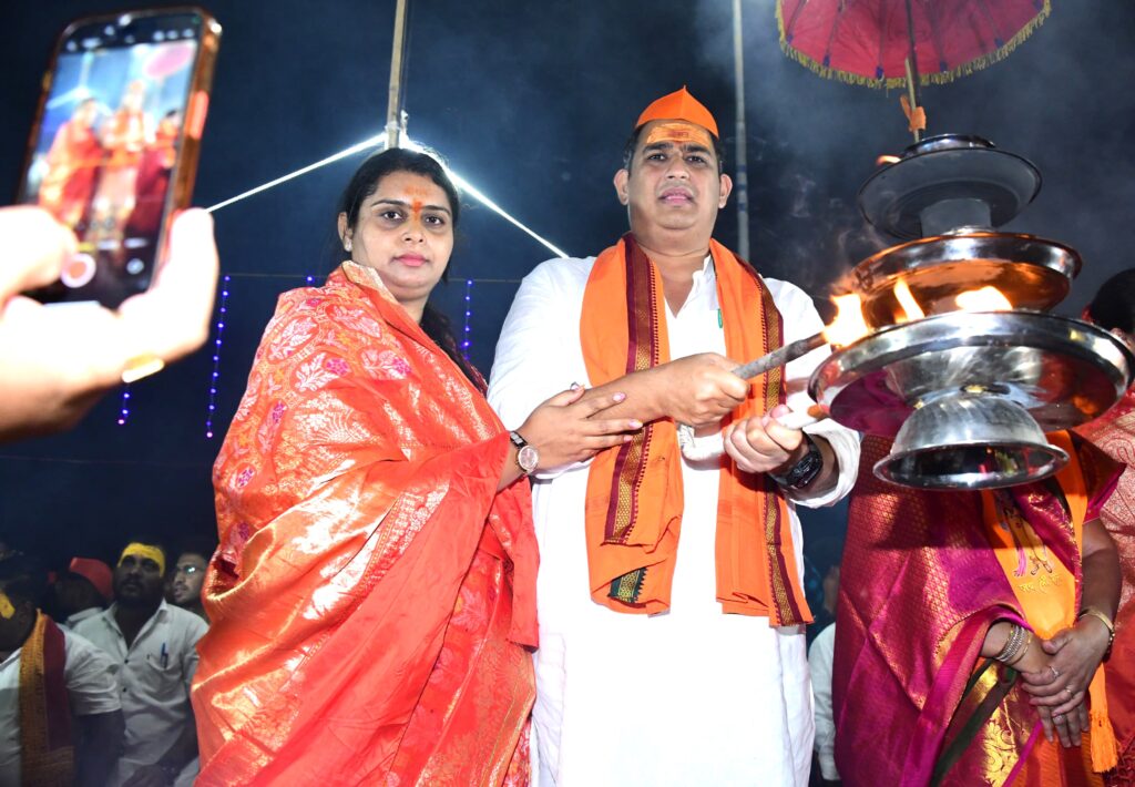 फोटो ओळ- पवित्र गोदावरी मातेची महाआरती करतांना आ. आशुतोष काळे व सौ. चैतालीताई काळे.