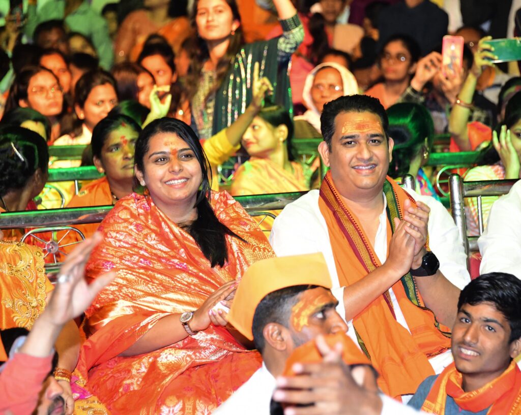 तसेच एक शाम, रामजी के नाम या भजन संध्या कार्यक्रमात प्रभू श्रीरामांच्या भजन श्रवणाचा आनंद घेतला. यावेळी आ. आशुतोष काळे यांनी नागरिकांना महाप्रसादाचे वाटप करून नागरिकांना श्री रामलल्ला प्राणप्रतिष्ठा सोहळ्याच्या शुभेच्छा दिल्या सौ.चैतालीताई काळे यांनी श्रीराम दीप लावले. सर्वत्र श्रीराम दीपांची रोषणाई, श्रीराम भक्तांच्या चेहऱ्यावर ओसंडून वाहत असलेला उत्साह, कोपरगाव शहरात करण्यात आलेली विद्युत रोषणाई, श्रीराम भक्तांच्या डोक्यावर असलेली भगवी टोपी व गळ्यातील भगव्या उपरणे व सर्वत्र होत असलेला जय श्रीरामचा जयघोष त्यामुळे सर्वत्र श्रीराममय वातावरण होवून कोपरगाव नगरीला प्रतीअयोध्येचे स्वरूप प्राप्त झाले होते.