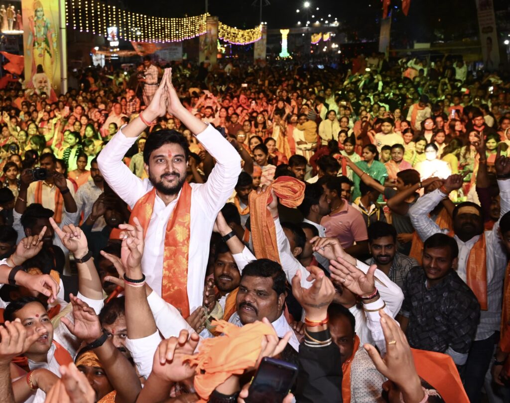 भजन संध्या कार्यक्रमात ‘रामजी की निकली सवारी रामजी की लीला है न्यारी’ या सुरभी कुलकर्णी हिने गायिलेल्या गीतावर युवा नेते विवेकभैय्या कोल्हे यांच्यासह उपस्थित श्रीरामभक्तांनी ठेका धरला. यावेळी विवेकभैय्या कोल्हे यांना कार्यकर्त्यांनी खांद्यावर उचलून घेतले. विवेकभैय्यांनी कार्यकर्त्यांसमवेत बहारदार नृत्य करून कार्यकर्त्यांचा व श्रीरामभक्तांचा आनंद द्विगुणीत केला.