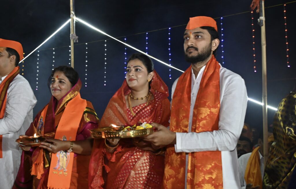 श्रीरामलल्ला प्राणप्रतिष्ठा आनंदोत्सव सोहळा समिती, समस्त कोपरगावकर व सकल हिंदू समाजाच्या वतीने सोमवारी (२२ जानेवारी) सायंकाळी पवित्र गोदावरी नदीकाठी गंगा गोदावरी महाआरतीचा भव्य-दिव्य नेत्रदीपक कार्यक्रम झाला. याप्रसंगी माजी आमदार स्नेहलताताई कोल्हे, युवा नेते विवेकभैय्या कोल्हे, रेणुकाताई कोल्हे यांनी श्रीरामाचा गजर करीत प्रचंड संख्येने जमलेल्या भाविकांच्या उपस्थितीत गंगा गोदावरी मातेची महाआरती केली व सर्वांना श्रीराम मंदिर मूर्ती प्राणप्रतिष्ठा सोहळ्याच्या शुभेच्छा दिल्या. श्रीराम जय राम जय जय राम, सियावर रामचंद्र की जय, हर हर गंगे, हर हर महादेव, गंगामैय्या की जय, गोदावरी माता की जय अशा विविध घोषणांनी संपूर्ण गोदाकाठ व कोपरगाव नगरी दुमदुमली होती. आकर्षक विद्युत रोषणाई, रंगीबेरंगी फटाक्यांची आतषबाजी व आसमंत दुमदुमून टाकणारा प्रभू श्रीरामाचा जयघोष यामुळे वातावरण चैतन्यमय झाले होते. यावेळी शेकडो दीप प्रज्वलित करून गोदावरी नदीपात्रात सोडण्यात आले. गंगा गोदावरी महाआरतीच्या निमित्ताने संपूर्ण गोदाकाठ परिसर दिव्यांनी व विद्युत रोषणाईने उजळून निघाला होता.
