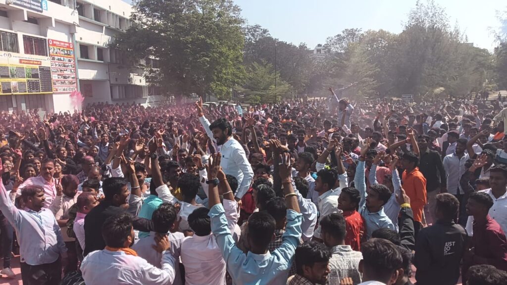 कोपरगाव प्रतिनिधी :- रयत शिक्षण संस्थेद्वारा संचलित कोपरगाव येथील श्री सद्गुरू गंगागीर महाराज (एसएसजीएम) विज्ञान, गौतम कला आणि संजीवनी वाणिज्य महाविद्यालयास राष्ट्रीय मूल्यांकन व अधिस्वीकृती परिषद अर्थात ‘नॅशनल असेसमेंट अँड अॅक्रिडेशन कौन्सिल’ (नॅक) कडून ३.६९ गुणांसह ए++ मानांकन प्राप्त झाले आहे. या यशाबद्दल एस. एस. जी. एम. महाविद्यालय विकास समितीचे सदस्य युवा नेते विवेकभैय्या कोल्हे यांनी शनिवारी (३ फेब्रुवारी) महाविद्यालय विकास समितीचे सर्व पदाधिकारी, महाविद्यालयातील प्राध्यापक, शिक्षकेतर कर्मचारी व विद्यार्थ्यांसमवेत गुलाल उधळून आनंदोत्सव साजरा केला. यावेळी विवेकभैय्या कोल्हे यांनी विद्यार्थ्यांसोबत गाण्यांवर ठेका धरत शानदार नृत्य केले. एस. एस. जी. एम. महाविद्यालयाने ‘नॅक’ चे ए++ मानांकन मिळवून उत्तुंग झेप घेतली असून, आजचा हा दिवस महाविद्यालयाच्या इतिहासात नक्कीच सुवर्णाक्षरांनी लिहिला जाईल, अशा भावना त्यांनी व्यक्त केल्या.