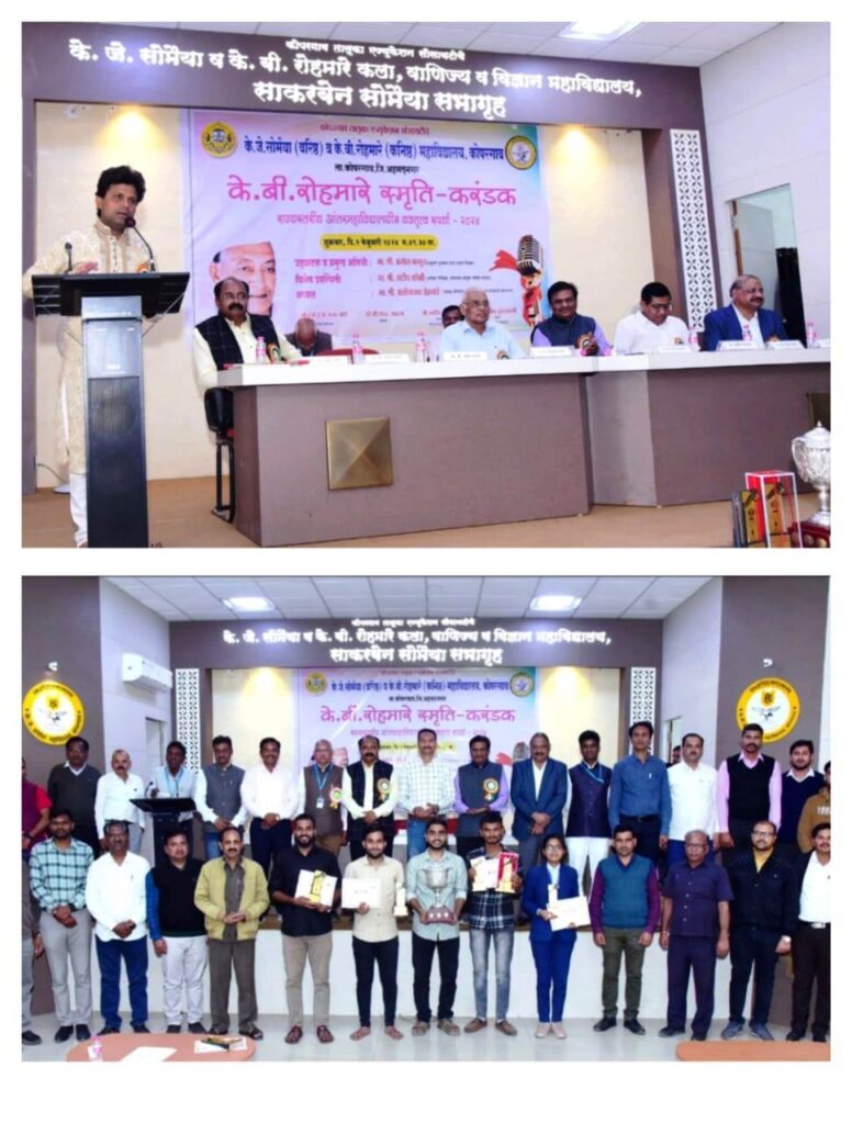 उद्घाटन सत्रात मा. अमोल बागुल यांनी ह्या स्पर्धेचे आयोजक रोहमारे परिवाराचा गौरव करतांना शैक्षणिक, सामाजिक क्षेत्रात समर्पित असलेले हे कुटुंब कोपरगावची आई म्हणून काम करत असल्याचे म्हटले. वक्तृत्व स्पर्धेबद्दल बोलतांना वक्तृत्व हे केवळ भौतिक गोष्टी मिळविण्यासाठी नसून अशा स्पर्धेमुळे विद्यार्थ्यांमध्ये विचारांचे जन-जागरण होणे आवश्यक असल्याचे त्यांनी म्हटले. यावेळी त्यांनी आपल्या मनोगतात व्यापक माणुसकीचा उल्लेख करतानांच पर्यावरण संवर्धनाचाही संदेश दिला. संस्थेचे अध्यक्ष मा.अशोकराव रोहमारे यांनी या स्पर्धेसाठी शुभेच्छा देतांना सध्याच्या परिस्थितीत अत्यंत ज्वलंत विषयावर आधारित ही स्पर्धा समाजात प्रबोधन घडविण्याचे काम नक्की करेल असा आशावाद व्यक्त केला. महाविद्यालयाचे प्राचार्य डॉ. बी. एस. यादव यांनी उपस्थितांचे स्वागत करतांनाच वक्तृत्व स्पर्धेतून विद्यार्थ्यांचे सर्वांगीण कौशल्य विकसित व्हावे व यातून सामाजिक परिवर्तनाचे काम विद्यार्थ्यांच्या हातून घडावे असे म्हटले. या स्पर्धेसाठी मुंबई , कोल्हापूर , पुणे, नंदुरबार, धुळे, अहमनगर, नाशिक, छ. संभाजीनगर आदी जिल्ह्यातील विविध महाविद्यालयांतील एकूण ४५ स्पर्धक सहभागी झाले होते. या स्पर्धेमध्ये मानाचा के.बी.रोहमारे स्मृति करंडक सांघिक प्रथम क्रमांक न्यू आर्टस्, कॉमर्स अँड सायन्स कॉलेज, अहमदनगर या संघाने पटकावला. या महाविद्यालयाच्या महेश जनार्दन उशिर व आकाश मोहिते यांनी सर्वाधिक गुण मिळवून सन्मानचिन्ह, रूपये २१००/ सह करंडक पटकावला. वैयक्तिक प्रथम क्रमांक रूपये ९०००/ यश रविंद्र पाटील (बी. के. बिर्ला कॉलेज, कल्याण), वैयक्तिक व्दितीय क्रमांक रूपये ७०००/ पराग राजेंद्र बदिरके ( यशवंतराव चव्हाण शासकिय विधी महाविद्यालय, पुणे), वैयक्तिक तृतीय क्रमांक रूपये ५०००/ महेश जनार्दन उशिर यांनी तर उत्तेजनार्थ पारितोषिक प्रत्येकी रूपये १०००/ आकाश मोहिते ( न्यू आर्टस्, कॉमर्स अँड सायन्स कॉलेज, अहमदनगर), साक्षी सुनील सवई (एस.एस.जी.एम. कॉलेज, कोपरगाव) यांनी पटकावले. या स्पर्धेमध्ये ज्येष्ठ मराठी कवी प्रा.लक्ष्मण महाडिक, डॉ. बाबासाहेब शेंडगे व प्रा.संपत आहेर यांनी परिक्षक म्हणून काम पाहिले. या स्पर्धेचे प्रास्ताविक स्पर्धेचे संयोजक प्रो. जे. एस. मोरे यांनी करतांना या स्पर्धेची पार्श्वभूमी व हेतू कथन केला. सूत्रसंचालन डॉ. एस. के. बनसोडे यांनी तर आभार महाविद्यालय विकास समितीचे सदस्य मा. सुधीर डागा यांनी मानले. या स्पर्धेसाठी अंतर्गत गुणवत्ता हमी कक्षाचे समन्वयक प्रो. विजय ठाणगे, संयोजन समितीचे सदस्य डॉ. गणेश देशमुख, प्रो. संतोष पगारे, प्रो. बी.बी.भोसले, डॉ. रविंद्र जाधव, डॉ. संजय दवंगे, प्रो. एस.एल. अरगडे, डॉ. वसुदेव साळुं