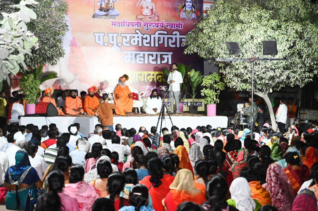 मिरवणुकीदरम्यान लोकशाहीर अण्णाभाऊ साठे स्मारक व छत्रपती शिवाजी स्मारक या ठिकाणी जेसीबीद्वारे पुष्पवष्टी करून प. पू. रमेशगिरीजी महाराजांचे स्वागत करण्यात आले. त्यांच्या स्वागतासाठी भाविकांनी मोठी गर्दी केली होती. राष्ट्रसंत सदगुरू जनार्दन स्वामी महाराज की जय, स्वामी रमेशगिरीजी महाराज की जय आदी घोषणांनी सारा परिसर दुमदुमून गेला होता. मिरवणुकीत महिलांनी फुगडी खेळून आनंद व्यक्त केला. विवेकभैय्या कोल्हे यांनी लोकशाहीर अण्णाभाऊ साठे स्मारक व छत्रपती शिवाजी स्मारकास पुष्पहार घालून अभिवादन केले. ही मिरवणूक राष्ट्रसंत जनार्दन स्वामी महाराज आश्रम येथे पोहोचल्यानंतर प. पू. रमेशगिरीजी महाराज यांचे प्रवचन झाले. तेथे विवेकभैय्या कोल्हे उपस्थित राहिले. जनार्दन स्वामी महाराज भक्त मंडळाच्या सर्व कार्यक्रमांच्या आयोजनात विवेकभैय्या कोल्हे यांनी विशेष सहकार्य केले, त्याबद्दल रमेशगिरीजी महाराजांनी त्यांचे कौतुक करून शुभेच्छा दिल्या. प्रवचनानंतर महाप्रसादाचा कार्यक्रम झाला. याप्रसंगी प. पू. दत्तगिरीजी महाराज, प. पू. कैलासनंदगिरीजी महाराज, प. पू. शेषगिरीजी महाराज, प. पू. निवृतीनाथगिरीजी, प. पू. गोवर्धनगिरीजी महाराज, प. पू. राघवेश्वरानंदगिरीजी महाराज, प. पू. शारदानंदगिरी माताजी महाराज, प. पू. मोरे महाराज, राष्ट्रसंत जनार्दन स्वामी (मौनगिरी) महाराज समाधी स्थान व श्री काशी विश्वनाथ महादेव शैक्षणिक व गोपालन ट्रस्टचे अध्यक्ष दत्तात्रय होळकर, उपाध्यक्ष विलासराव कोते, सचिव अंबादासराव अंत्रे, विश्वस्त अनिल जाधव, रामकृष्ण कोकाटे, शिवनाथ शिंदे, आशुतोष पानगव्हाणे, संदीप चव्हाण, अतुल शिंदे, संजीवनी उद्योग समुहातील विविध संस्थांचे आजी-माजी पदाधिकारी, संत जनार्दन स्वामी भक्त परिवार, भाजप, विश्व हिंदू परिषद, बजरंग दलाचे पदाधिकारी, कार्यकर्ते व नागरिक मोठ्या संख्येने उपस्थित होते.