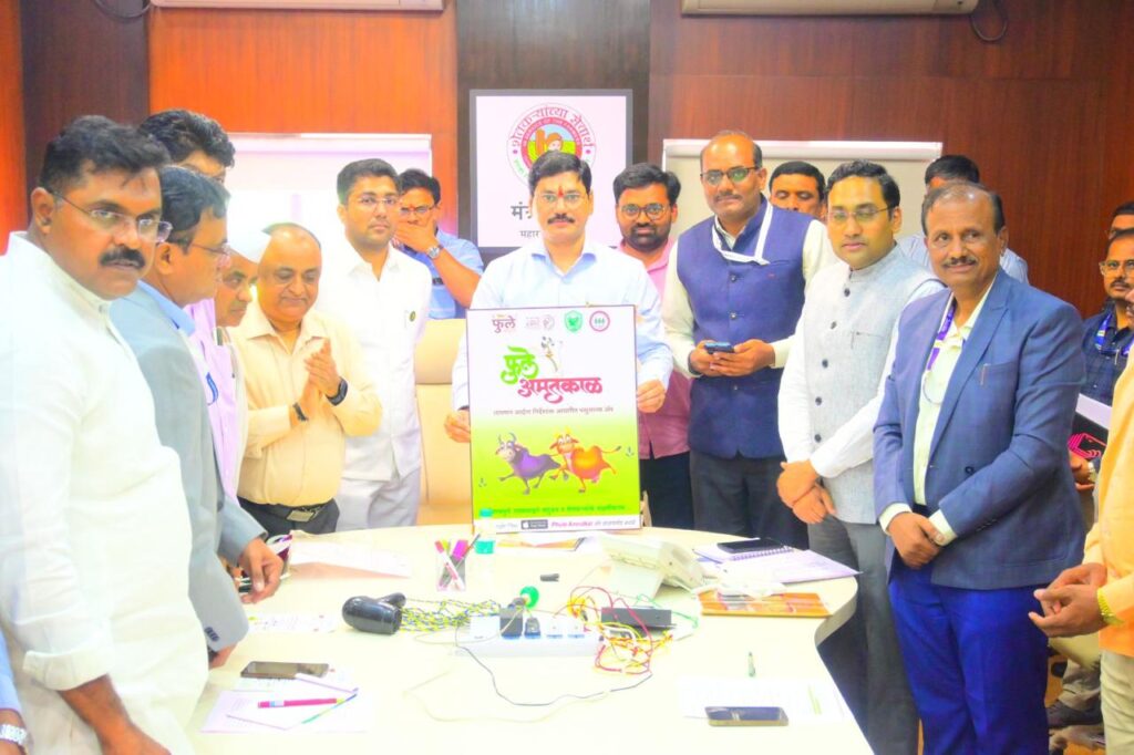 महात्मा फुले कृषी विद्यापीठाच्या ‘देशी गाय संशोधन व प्रशिक्षण केंद्रातर्फे’ “फुले अमृतकाळ – तापमान आर्द्रता निर्देशांक आधारित पशु सल्ला ॲप” चे उद्घाटन मुंबई येथे मंत्रालयात राज्याचे कृषी मंत्री मा. ना. श्री. धनंजय मुंडे यांच्या हस्ते करण्यात आले. या सोहळ्यास विद्यापीठाचे कुलगुरू मा. डॉ. प्रशांतकुमार पाटील, आमदार मा. श्री. संग्राम जगताप, आमदार मा. श्री. बाळासाहेब आसबे, राज्याचे अपर कृषी सचिव श्री. अनूप कुमार तसेच कृषी आयुक्त श्री. प्रविण गेडाम हे उपस्थित होते.