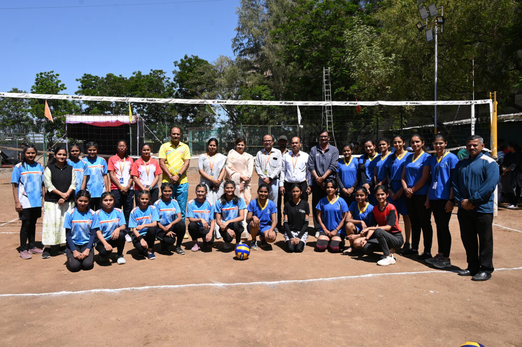 फोटो ओळीः आयईडीएसएसए, महाराष्ट्र राज्य प्रायोजित व संजीवनी के.बी.पी. पाॅलिटेक्निक आयोजित मुलींच्या राज्य स्तरीय व्हाॅलिबाॅल सामन्यांच्या उद्घाटन प्रसंगी प्रमुख पाहुण्या डाॅ. मनाली कोल्हे यांच्या समवेत टिपलेले छायाचित्र.