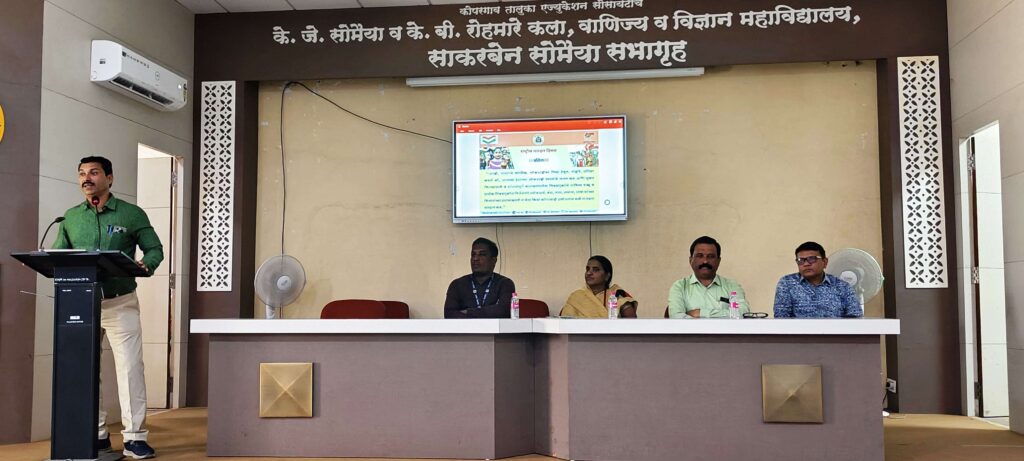 कोपरगाव प्रतिनिधी: स्थानिक के.जे.सोमैया (वरिष्ठ) व के. बी. रोहमारे (कनिष्ठ) महाविद्यालयात नुकताच राष्ट्रीय मतदार दिन साजरा करण्यात आल्याची माहिती कनिष्ठ महाविद्यालयाचे उपप्राचार्य बी.आर.सोनवणे यांनी दिली आहे. या कार्यक्रमाप्रसंगी कोपरगांव पंचायत समितीच्या गटशिक्षण अधिकारी श्रीमती शबाना शेख, श्री. प्रशांत शिंदे, महाविद्यालयाचे प्राचार्य डॉ.बी.एस.यादव, कनिष्ठ महाविद्यालयाचे उपप्राचार्य बी.आर.सोनवणे, रजिस्ट्रार डॉ. अभिजित नाईकवाडे हे उपस्थित होते.