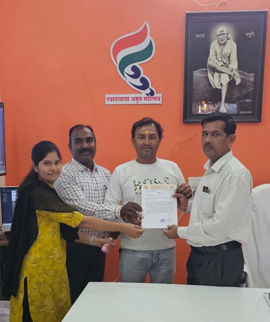 कोपरगाव प्रतिनिधी – केंद्र सरकारद्वारे देशातील सर्व शहरे स्वच्छ होऊन स्वच्छतेबाबत जनसहभागातून व्यापक चळवळ उभारली जावी यासाठी स्वच्छ भारत अभियानाची सुरुवात करण्यात आलेली आहे तसेच राज्य शासनाद्वारे पृथ्वी, जल, तेज, वायू आकाश पर आधारीत पर्यावरण संरक्षण करीता माझी वसुंधरा अभियान ४.० ची सुरुवात केली असून या मोहिमेच्या जनजागृती करिता गेल्या २५५ हुन अधिक आठवडे कोपरगाव शहरातून वाहणाऱ्या पवित्र अशा गोदावरी नदीची अविरत पणे सेवा स्वच्छता करत असलेले आदिनाथ ढाकणे यांची कोपरगाव नगरपरिषदेच्या स्वच्छ सर्वेक्षण २०२४ व माझी वसुंधरा ४.० या अभियान करीता स्वच्छता व पर्यावरण दुत म्हणजेच ब्रँड ॲम्बेसिडर म्हणून नगरपारिषदेचे प्रशासक तथा मुख्याधिकारी सुहास जगताप यांनी नियुक्ती करण्यात आलेल्या सहीचे नियुक्ती पत्र कोपरगाव नगरपरिषदेचे उपमुख्याधिकारी मनोजकुमार पापडीवाल, नगरपरिषदेचे संगणक अभियंता भालचंद्र उंबरजे, शहर समन्वयक गायत्री शहाणे यांच्या हस्ते ढाकणे यांना देण्यात आले .