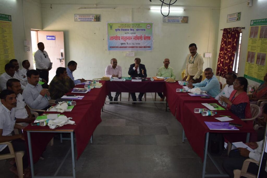 सिंचनाखालील क्षेत्रात वाढ होण्यासाठी शेतकऱ्यांनी जलसंधारणावर भर देणे गरजेचे आहे. त्याचप्रमाणे शेतकऱ्यांनी आपले उत्पन्न वाढविण्यासाठी नवनवीन तंत्रज्ञान आत्मसात करावे. विद्यापीठाने संशोधित केलेल्या नवनवीन शेती पद्धतींचा अवलंब जर आपल्या शेतीमध्ये केला तर शेतकऱ्यांच्या उत्पन्नात वाढ होऊन त्यांना आर्थिक स्थैर्य प्राप्त होईल असे प्रतिपादन महात्मा फुले कृषी विद्यापीठाचे कुलगुरू डॉ. पी. जी. पाटील यांनी केले. कृषी विज्ञान केंद्र बोरगाव येथे शास्त्रीय सल्लागार समिती बैठकीच्या अध्यक्षस्थानावरून डॉ. पी.जी. पाटील बोलत होते. याप्रसंगी विस्तार शिक्षण संचालक डॉ. सी. एस. पाटील, कोल्हापूर येथील सहयोगी संशोधन संचालक डॉ. अशोक पिसाळ, पाडेगाव येथील मध्यवर्ती ऊस संशोधन केंद्राचे ऊस विशेषज्ञ डॉ. राजेंद्र भिलारे व बोरगाव कृषी विज्ञान केंद्राचे कार्यक्रम समन्वयक डॉ. महेश बाबर याप्रसंगी उपस्थित होते. या बैठकीस अटारी पुणे येथील शास्त्रज्ञ डॉ. तुषार आठरे हे ऑनलाइन पद्धतीने उपस्थित होते. दरवर्षी कृषी विज्ञान केंद्रांमध्ये होणाऱ्या उपक्रमांचा आढावा घेऊन पुढील वर्षी करावयाच्या नियोजित कामकाजाची दिशा ठरविण्यासाठी शास्त्रीय सल्लागार समिती बैठकीचे आयोजन करण्यात येत असते. यामध्ये विद्यापीठ स्तरावरील तसेच जिल्हास्तरावरील कृषी व कृषी संलग्न विविध विभागातील तज्ञ सहभागी होऊन केंद्राच्या प्रभावी वाटचालीसाठी मार्गदर्शन व सूचना देत असतात. या बैठकीमध्ये झालेल्या कार्यक्रमांमध्ये डॉ. सी. एस. पाटील यांनी आपल्या मार्गदर्शनामध्ये पिकावरील कीड रोग व्यवस्थापनासाठी एकात्मिक कीड रोग नियंत्रण पद्धतींचा अवलंब करून उत्पादन वाढीसाठी प्रयत्न करावे असे सांगितले. याप्रसंगी रब्बी पिकातील कीड रोगांचे नियंत्रण या प्रकाशानाचे विमोचन मान्यवरांच्या हस्ते करण्यात आले. यावेळी सातारा जिल्ह्यातील प्रगतशील व पुरस्कार प्राप्त शेतकऱ्यांचा कुलगुरू डॉ. पी.जी. पाटील यांच्या हस्ते सत्कार करण्यात आला. या बैठकीमध्ये डॉ. महेश बाबर यांनी कृषी विज्ञान केंद्राच्या गतवर्षातील कार्याचा अहवाल सादर केला. या बैठकीसाठी कृषी संशोधन केंद्र, कराड, प्रकल्प संचालक, आत्मा, जिल्हा अग्रणी बँकेचे प्रबंधक, सातारा जिल्ह्यातील कृषी विभागाचे अधिकारी व प्रगतशील शेतकरी उपस्थित होते. कार्यक्रमाचे सूत्रसंचालन प्रा. सागर स सकटे यांनी तर आभार श्री. संग्राम पाटील यांनी मानले.