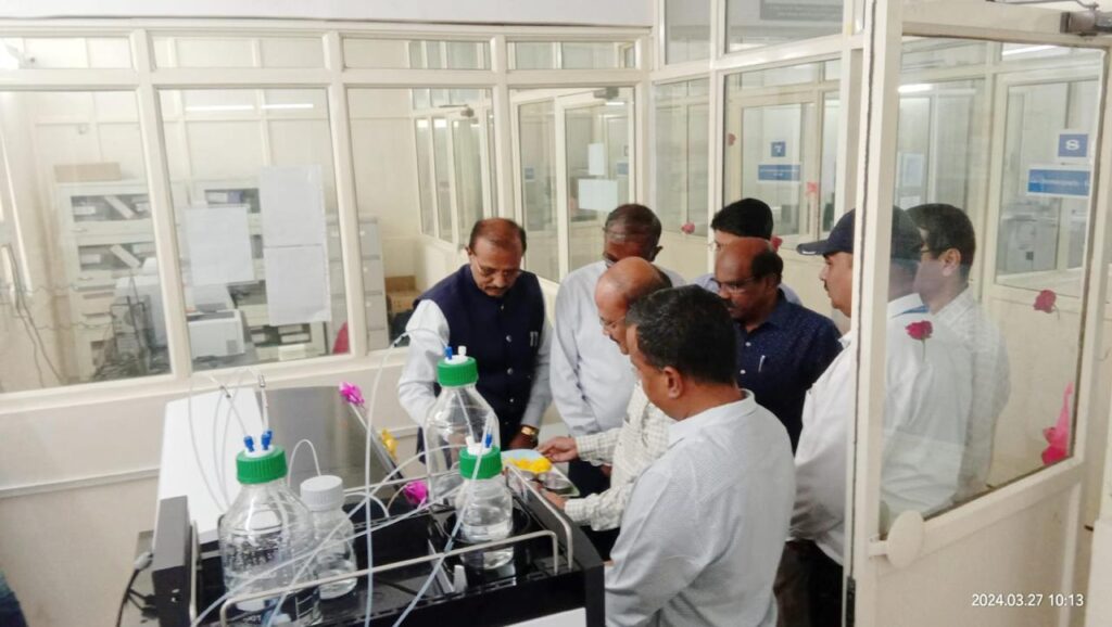 महात्मा फुले कृषि विद्यापीठाचे कुलगुरु डॉ. पी.जी. पाटील यांच्या अथक प्रयत्नामुळे विद्यापीठातील किटकशास्त्र विभागाच्या किडनाशक अंश विश्लेषण प्रयोगशाळेस एलसी-एमएस/एमएस हे उपकरण मिळाले आहे. राज्यातील चारही कृषि विद्यापीठांपैकी फक्त महात्मा फुले कृषि विद्यापीठातील किटकशास्त्र विभागामध्ये अखिल भारतीय किडनाशक अंश पृथःकरण योजना कार्यरत आहे. या प्रयोगशाळेला एन.ए.बी.एल.चे नामांकण प्राप्त आहे. या योजनेला भारतीय कृषि अनुसंधान परिषद, नवी दिल्ली यांचा 75 टक्के अर्थसहाय्य व महाराष्ट्र शासनाचे 25 टक्के अर्थसहाय्यातून किडनाशक अंश विश्लेषण प्रयोगशाळेस एलसी-एमएस/एमएस हे उपकरण खरेदी केले आहे. या उपकरणाची पाहणी महात्मा फुले कृषि विद्यापीठाचे कुलगुरु डॉ. पी.जी. पाटील यांनी नुकतीच प्रयोगशाळेला भेट देवून या उपकरणाचे उद्घाटन केले. यावेळी संशोधन संचालक डॉ. सुनिल गोरंटीवार, अधिष्ठाता डॉ. श्रीमंत रणपिसे, विस्तार शिक्षण संचालक डॉ. सी.एस. पाटील, कुलसचिव श्री. अरुण आनंदकर, नियंत्रक श्री. सदाशिव पाटील, पदव्युत्तर महाविद्यालयाचे सहयोगी अधिष्ठाता डॉ. विठ्ठल शिर्के, कृषि अभियांत्रिकी महाविद्यालयाचे सहयोगी अधिष्ठाता डॉ. दिलीप पवार, किटकशास्त्र विभागाचे प्राध्यापक डॉ. साताप्पा खरबडे, अधिदान व लेखा अधिकारी श्री. सुर्यकांत शेजवळ, किडनाशक अंश विश्लेषण प्रयोगशाळेचे डॉ. भाई देवरे व डॉ. योगेश सैंदाणे उपस्थित होते.
