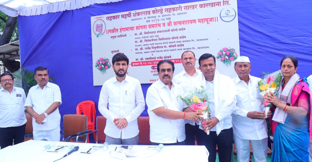 सहकारमहर्षी शंकरराव कोल्हे साखर कारखान्याच्या ६१ व्या गळीत हंगामाची सांगता बुधवारी झाली त्यात संजीवनी उद्योग समुहाचे अध्यक्ष बिपीनदादा कोल्हे यांनी सभासद् शेतकऱ्यांना मार्गदर्शन करत, संचालक राजेंद्र कोळपे यांचा सत्कार केला.