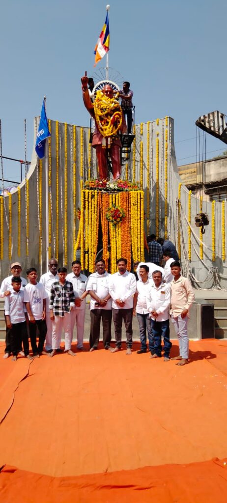 या वेळी मान्यवारांच्या उपस्थिती डॉ बाबासाहेब आंबेडकर यांच्या पूर्णकृती पुतळ्याला पुष्प हार अर्पण करून अभिवादन करण्यात आले