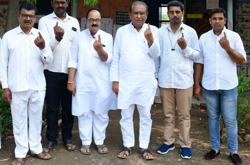 फोटो ओळ- माहेगाव देशमुख येथे मतदानाचा हक्क बजावतांना आ. आशुतोष काळे,तसेच मा.आ.अशोकराव काळे, सौ. पुष्पाताई काळे, सौ. चैतालीताई काळे,अभिषेकदादा काळे.