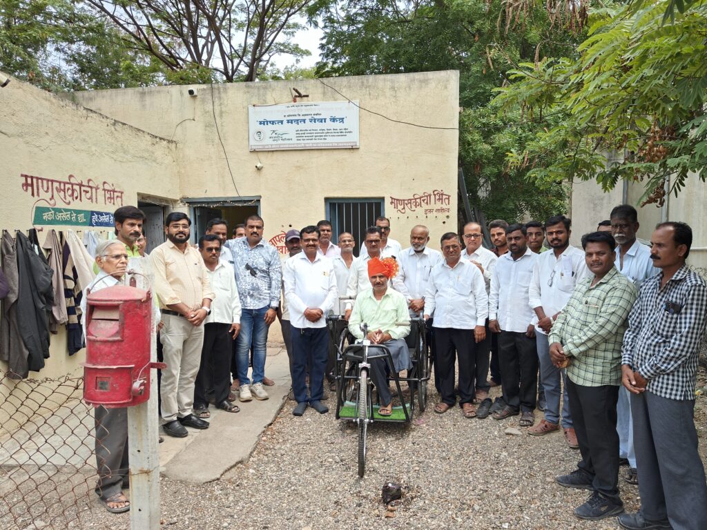 राहुल टेके यांच्या तृतीय पुण्यस्मरणात कोपरगाव तालुक्यातील कान्हेगाव येथील बाळासाहेब गोसावी या दिव्यांग बांधवाला संतोष चव्हाण यांच्या दातृत्वातून व ट्रस्टच्या माध्यमातून तीन चाकी सायकल मोफत देण्यात आली.