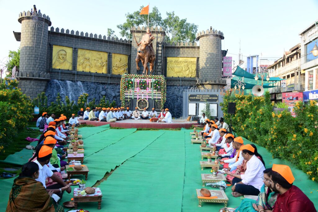 जगातील अब्जावधी लोकांच्या हृदयावर अधिराज्य गाजविणाऱ्या युगपुरुष छत्रपती शिवाजी महाराजांच्या ३५१ व्या शिवराज्याभिषेक दिनानिमित्त गुरुवार (दि.६) रोजी कोपरगाव शहरातील छत्रपती शिवाजी महाराज स्मारक याठिकाणी आ. आशुतोष काळे यांच्या हस्ते असंख्य शिवप्रेमींच्या उपस्थितीत विधिवत पूजन करण्यात आले. महाराजांना दुग्धाभिषेक करण्यात येवून महाआरती करण्यात आली व मोठ्या दिमाखात शिवराज्याभिषेक दिन साजरा करण्यात आला. याप्रसंगी आ.आशुतोष काळे बोलत होते. यावेळी छत्रपती शिवाजी महाराजांच्या जयजयकाराने संपूर्ण परिसर दुमदुमून गेला होता व संपूर्ण वातावरण शिवमय झाले होते.