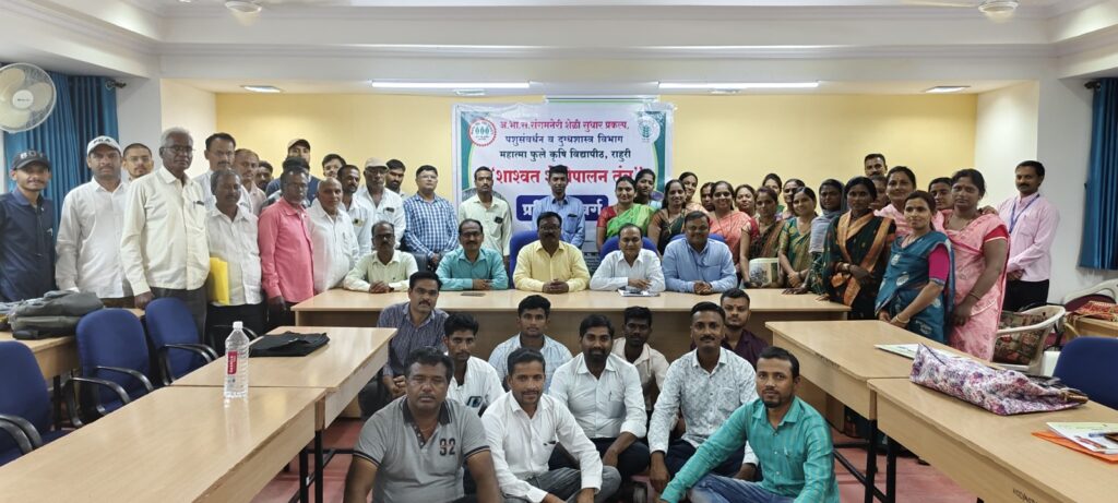महात्मा फुले कृषि विद्यापीठ, राहुरी येथील अखिल भारतीय समन्वीत शेळी सुधार प्रकल्पांतर्गत शेळीपालकांसाठी शाश्वत शेळीपालन तंत्र या विषयावर तीन दिवसीय प्रशिक्षण वर्गाचे आयोजन करण्यात आले होते. महात्मा फुले कृषि विद्यापीठाचे कुलगुरू डॉ. पी.जी. पाटील व संशोधन संचालक डॉ. विठ्ठल शिर्के यांच्या मार्गदर्शनाखाली शेळी सुधार प्रकल्पामध्ये प्रशिक्षणाचे आयोजन करण्यात येत आहे. या प्रशिक्षण कार्यक्रमाच्या समारोपप्रसंगी पशुसंवर्धन व दुग्धशास्त्र विभागाचे प्रमुख डॉ. दिनकर कांबळे, प्रकल्पाचे वरिष्ठ शास्त्रज्ञ व प्रशिक्षण समन्वयक डॉ. विष्णू नरवडे, डॉ. दिलीप देवकर, डॉ. उल्हास गायकवाड व डॉ. अमर लोखंडे उपस्थित होते. याप्रसंगी डॉ. दिनकर कांबळे मार्गदर्शनात म्हणाले की, शेतकर्यांना विद्यापीठामार्फत दिल्या जाणार्या प्रशिक्षणाचा लाभ घेऊन आपला शेळीपालन व्यवसाय किफायतशीररित्या करून जास्तीत जास्त नफा मिळवावा. व्यवसाय म्हणून शेळीपालन केल्यास त्यापासून शाश्वत उत्पादन शक्य आहे. यावेळी प्रास्ताविकात प्रशिक्षण समन्वयक व वरिष्ठ शास्त्रज्ञ डॉ. विष्णू नरवडे यांनी शेळीपालकांना आधुनिक तंत्रज्ञानाची माहिती, शाश्वत व व्यावसायिक शेळीपालानाबाबत तसेच नवनवीन तंत्रज्ञानाबाबत सजगता निर्माण व्हावी हेतूने या प्रशिक्षणाचे आयोजन करण्यात आल्याचे सांगितले. आजपर्यंत 23 प्रशिक्षण वर्गाद्वारे 884 प्रशिक्षणार्थीनी लाभ घेतला आहे.