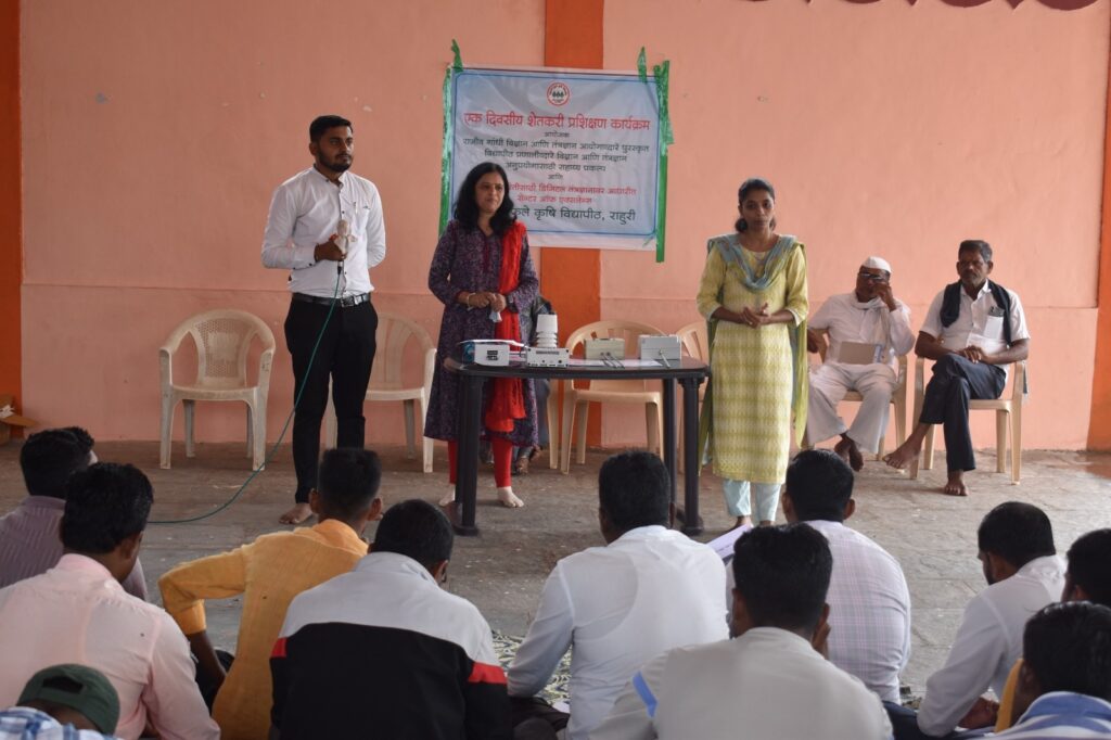या एक दिवसीय प्रशिक्षणात प्रकल्पाचे संशोधन सहयोगी इंजि. अभिषेक दातीर यांनी पिकांच्या पाण्याची गरज काढण्यासाठी फुले इरिगेशन शेड्युलर मोबाईल अॅपचा वापर याविषयी सविस्तर माहिती दिली. संशोधन सहयोगी इंजि. तेजश्री नवले यांनी प्रकल्प अंतर्गत विकसित करण्यात आलेल्या आयोटी तंत्रज्ञानाचा वापर काटेकोर पाणी व्यवस्थापनाकरिता कसा करावा या तंत्रज्ञानाविषयी मार्गदर्शन केले. डॉ. शुभांगी घाडगे यांनी महात्मा फुले कृषी विद्यापीठाच्या कास्ट प्रकल्पांतर्गत विकसित करण्यात आलेल्या काटेकोर शेतीसाठी मोबाईलचा वापर याविषयी माहिती दिली. या प्रशिक्षणाचे आयोजक म्हणुन कृषि अभियांत्रिकी विभागाचे प्रमुख तथा काटेकोर शेतीसाठी डिजिटल तंत्रज्ञानावर आधारित सेंटर ऑफ एक्सलन्सचे प्रमुख संशोधक डॉ. मुकुंद शिंदे आणि राजीव गांधी विज्ञान आणि तंत्रज्ञान आयोगाद्वारे पुरस्कृत विद्यापीठ प्रणालीद्वारे विज्ञान आणि तंत्रज्ञान अनुप्रयोगासाठी सहाय्य प्रकल्पाचे प्रमुख संशोधक तथा जलसिंचन व निचरा अभियांत्रिकीचे सहयोगी प्राध्यापक डॉ. सुनिल कदम यांनी काम पाहिले. या प्रशिक्षणासाठी बाबुर्डी घुमट गावातील 60 शेतकरी उपस्थित होते.