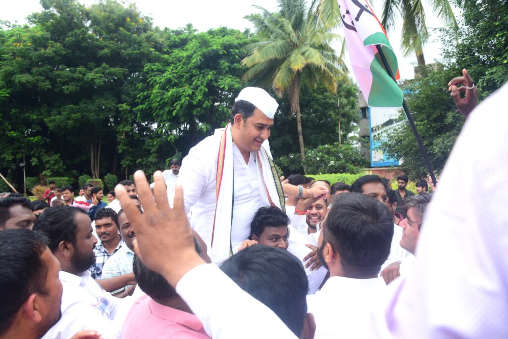 चौकट :- दरवर्षी आ. आशुतोष काळे श्री साईबाबांचे दर्शन करून कार्यकर्त्यांच्या शुभेच्छा स्वीकारण्यासाठी कर्मवीर शंकरराव काळे कारखाना कार्यस्थळावर उपस्थित असतात. त्याप्रमाणे याहीवर्षी शुभेच्छा स्विकारण्यासाठी सकाळी दहा ते चार यावेळेत त्यांनी कार्यकर्त्यांच्या शुभेच्छा स्वीकारल्या. यावेळी कार्यकर्त्यांची शुभेच्छा देण्यासाठी मोठी गर्दी उसळली होती. अनेक कार्यकर्त्यांनी केक आणून व पुष्पगुच्छ देवून आ.आशुतोष काळे यांना वाढदिवसाच्या शुभेच्छा दिल्या. तर यावेळी काही हौशी कार्यकत्यांनी वाढदिवसस्थळी डी.जे. लावून स्वत:ही मनसोक्त नाचत आ.आशुतोष काळे यांना खाद्यावर घेवून नाचत आपला आनंद व्यक्त केला. यावेळी शुभेच्छा देण्यासाठी आलेल्या इतर कार्यकर्त्यांना देखील नाचण्याचा मोह आवरता आलाई नाही.त्यामुळे डी.जे.च्या तालावर कार्यकर्त्यांनी चांगलाच ताल धरला होता. त्यावेळी २०१९ च्या विधानसभा निवडणुकीच्या विजयी मिरवणुकीची आठवण होवून कार्यकर्त्यांचा हा उत्साह येणाऱ्या विधानभा निवडणुकीतील विजयी मिरवणूकीची रंगीत तालीम असल्याचे निर्माण झालेल्या कार्यकर्त्यांच्या उत्साहाने भरलेल्या वातावरणावरून जाणवत होते.