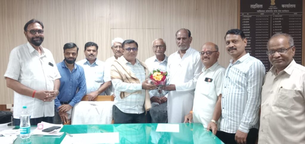 कोपरगाव तालूका शेतकरी कृती समितीच्या वतीने तहसीलदार संदीपकुमार भोसले यांची बदली झाली असून त्यांचा सत्काराचे आयोजन करण्यात आले होते यावेळी कोपरगाव शेतकरी कृती समितीचे नेते नितीन मनोहर शिंदे, सामाजिक कार्यकर्ते विकास आढाव, तुषार विद्वांस, बाळासाहेब पांढरे, सदाशिव रासकर,प्रविण शिंदे, संतोष गंगवाल पत्रकार सिद्धार्थ मेहेरखांब यावेळी उपस्थित होते यावेळी कुदळे बोलताना म्हणाले कोपरगाव तालुक्याला वर्षानुवर्ष अनेक प्रशासकीय अधिकारी यांनी काम केले आहे व शासनाच्या नियमानुसार बदली होऊन दुसऱ्या ठिकाणी जावे लागते परंतु काही अधिकाऱ्यांची काम करण्याची पद्धत ही निराळीच असून ती माणसे कामाच्या स्वरूपातून नागरिकांच्या मनामध्ये आपला ठसा उमटवितात तालुक्यामध्ये शासनाच्या विविध प्रकारच्या योजना राबवून महसुलच्या माध्यमातून संजय गांधी निराधार योजना, श्रावण बाळ योजना,रेशन कार्डचे अनेक समस्या शेतकऱ्यांच्या रस्त्याच्या समस्या अशा एक ना अनेक एक समस्या भोसले यांनी निपटारा करून नागरिकांना न्याय देण्याचा प्रयत्न केला आहे त्यांना कोपरगाव तालुक्यात काम करण्याची संधी जरी कमी मिळाली असेल तरीही त्यांनी कमी कालखंडामध्ये अनेक प्रकारची कामे केली गोदावरी नदी असल्याकारणाने वाळू रोखण्याचे मोठे आव्हान त्यांनी स्वीकारले असून बहुतांशी वाळू तस्करी रोखण्यात त्यांना यश आले त्यांच्याच कालखंडामध्ये शासकीय वाळू डेपो तयार होऊन अनेकांचे घर बांधण्याचे अपुरे असणारे स्वप्नही पूर्ण झाले आहे घरकुलधारकांना वाळू मिळाल्याने त्यांचे घरकुल ही मोठ्या प्रमाणात झाले आहे असे अधिकारी तीन वर्षे त्या तालुक्यात असणे गरजेचे आहे जेणेकरून अनेक शासनाच्या योजनांचा लाभ हा नागरिकांना घेता आला पाहिजे असेही ते म्हणाले असून समितीच्या वतीने मुख्यमंत्री एकनाथ शिंदे व महसूल मंत्री राधाकृष्ण विखे पाटील यांना निवेदन देऊन कमीत कमी तीन वर्ष अशा अधिकाऱ्यांना त्या तालुक्यात काम करण्याची संधी मिळावी असे निवेदन देणार असल्याचे यावेळी सांगितले आहे.