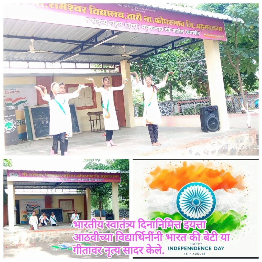 स्वातंत्र्य दिनाच्या निमित्ताने विद्यालयातील इयत्ता आठवीच्या विद्यार्थिनींनी भारत की बेटी या गीतावर सुंदर नृत्य सादर केले