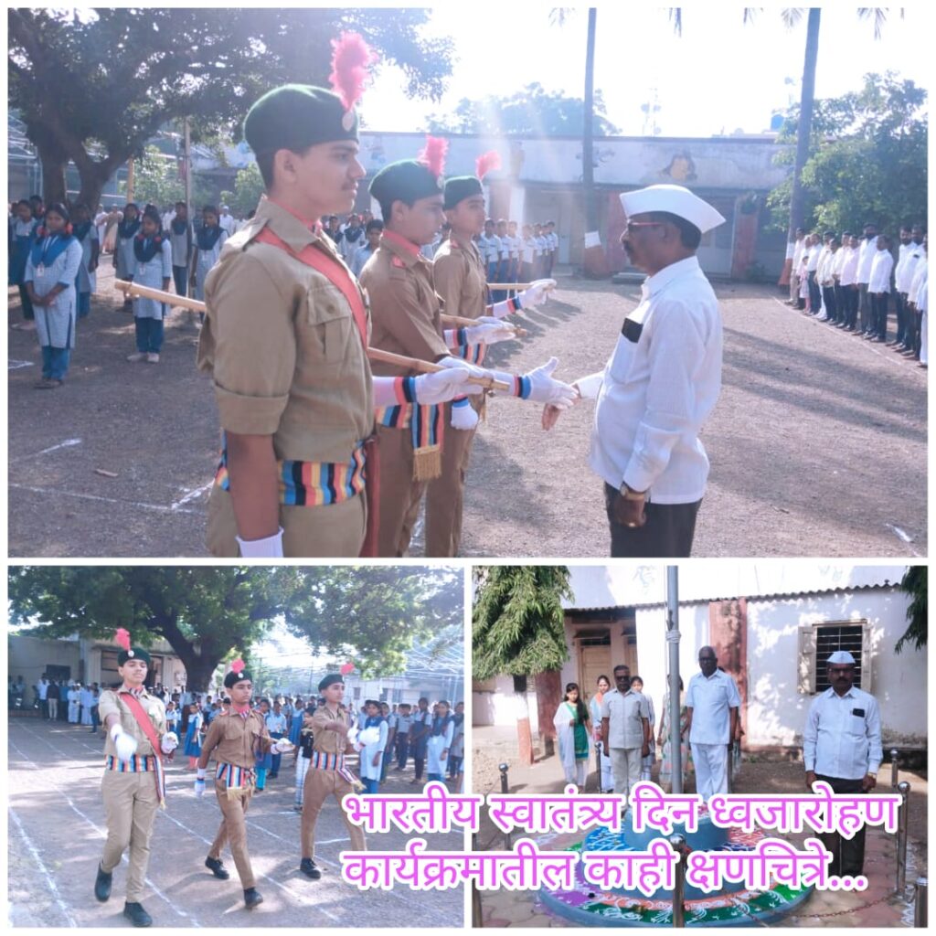 या ध्वजारोहण कार्यक्रमासाठी गावातील माजी विद्यार्थी,ग्रामस्थ, शिक्षण प्रेमी नागरिक, माजी सैनिक,माजी स्थानिक स्कूल कमिटी सदस्य श्री मच्छिंद्र टेके, माजी सरपंच श्री बद्रिनाथ जाधव, श्री सतिशराव कानडे यांच्यासह विद्यमान सरपंच योगिताताई जाधव,उपसरपंच श्री विजुभाऊ गायकवाड, सर्व सन्माननीय ग्रामपंचायत सदस्य, ग्राम विकास अधिकारी श्री दिलीप वारकर व इतर मान्यवर उपस्थित होते स्वातंत्र्यदिनाच्या निमित्ताने विद्यालयाच्या एस एस सी परीक्षा मार्च २४ मधील गुणवंत विद्यार्थिनींना दि.गोदावरी बायो रिफायनरीज,साकरवाडी यांच्यावतीने देण्यात आलेल्या रोख पारितोषिकांचे मान्यवरांच्या हस्ते वितरण करण्यात आले. त्याचप्रमाणे गावातील शिक्षण प्रेमी ग्रामस्थ मा.श्री एम के टेकेसर यांच्या मातोश्री यांच्या पुण्यस्मरणार्थ गेल्या वर्षी इयत्ता नववी मध्ये प्रथम आलेल्या दोन विद्यार्थ्यांना रोख रक्कम अनुक्रमे 3100 व 3000 रुपये या पारितोषिकाचे वितरण मान्यवरांच्या हस्ते करण्यात आले यावेळी विद्यालयाचे माजी विद्यार्थी तथा माजी सैनिक श्री संदेश रामदास जाधव यांचा सत्कार करण्यात आला