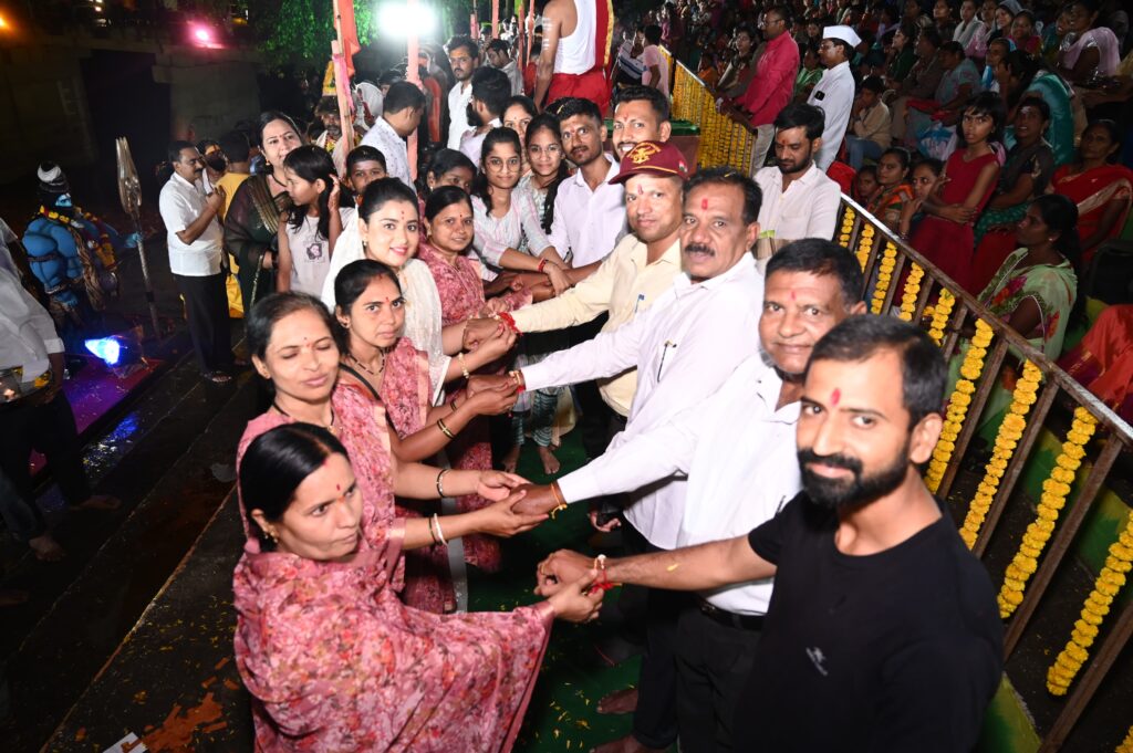 फटाक्यांची आतिषबाजी,अतिशय भव्य शिवपिंड आणि शिवमूर्तीचे तेजस्वी स्वरूप असणाऱ्या वातावरणात हा देखणा सोहळा संपन्न झाला. विविध शासकीय योजना असो किंवा तळागाळापर्यंत जनसंपर्क ठेवून आपले कर्तव्य पार पाडतात. आशासेविका,अंगणवाडी सेविका,पोलीस,डॉक्टर,वकील,शिक्षिका,नर्स,समाजातील विविध क्षेत्रात काम करणाऱ्या भगिनी यांचे मोलाचे योगदान सामाजिक जडणघडणीत आहे.आपण आशाताईंच्या असते रक्षाबंधन साजरे करून त्यांचे कर्तव्य आणि योगदान समाजासाठी निश्चितच मोलाचे आहे.सर्वच महिला भगिनी या पुरुषांप्रमाणे आपले कर्तव्य पार पाडत असतात.कौटुंबिक जबाबदारी सांभाळून आपले सामाजिक कर्तव्य देखील महिला शक्ती पार पाडते.पवित्र गंगा गोदावरी मातेच्या तीरावर स्त्री शक्तीला वंदन आहे असे प्रतिपादन विवेकभैय्या कोल्हे यांनी केले.