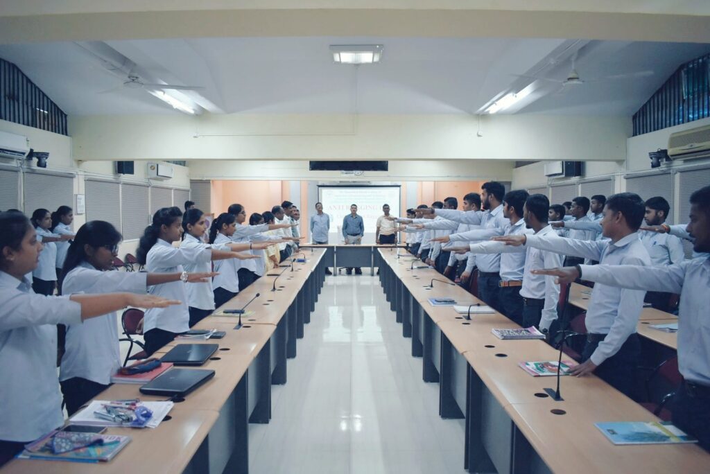 यावेळी डॉ. विक्रम कड यांनी रॅगिंग म्हणजे काय, अँटी रॅगिंग कायदा तयार करण्यामागची पार्श्वभूमी समजावून सांगितली व या सर्व माहितीचे पावर पॉइंटद्वारे सादरीकरण केले. याप्रसंगी त्यांनी विद्यार्थ्यांना अँटी रॅगींगची शपथ दिली. याप्रसंगी डॉ. कैलास कांबळे, डॉ. ममता पटवर्धन, डॉ. सुनील फुलसावंगे यांनी अँटी रॅगींग संदर्भात सादरीकरण व मार्गदर्शन केले. यावेळी विद्यार्थी कु. गायत्री घळसासी, कु. चैताली मोरे व श्री. उत्कर्ष खोसे यांनी आपले मनोगत व्यक्त केले. या कार्यक्रमाचे सूत्रसंचालन व प्रास्ताविक डॉ. विक्रम कड यांनी केले तर आभार डॉ. दगडु पारधे यांनी मानले.