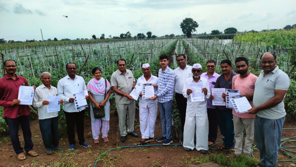 महात्मा फुले कृषि विद्यापीठ, राहुरी येथील वनस्पती रोगशास्त्र व अणुजीवशास्त्र विभाग आणि कृषि विभाग, महाराष्ट्र शासन यांचे संयुक्त विद्यमाने राबविण्यात येणार्या हॉर्टसॅप प्रकल्पामार्फत नाशिक जिल्ह्यातील येवला तालुक्यातील देशमाने बुद्रुक या भागातील प्लॉटला विद्यापीठातील शास्त्रज्ञ व कृषि विभागातील अधिकारी यांनी भेटी दिल्या. या चमूमध्ये वनस्पतीरोगशास्त्र व कृषि अनुजीवशास्त्र विभाग प्रमुख तथा हॉर्टसॅप प्रकल्प प्रमुख डॉ. आण्णासाहेब नवले, अखिल भारतीय समन्वित कोरडवाहू फळपीक योजनाचे कनिष्ठ रोगशास्त्रज्ञ डॉ. प्रकाश मोरे, रोगशास्त्र व कृषि अनुजीवशास्त्राचे संशोधन सहयोगी डॉ. प्रवीण खैरे, पाटोदा येथील कृषि विभागातील मंडळ कृषि अधिकारी श्री. एकनाथ बडाख, कृषि पर्यवेक्षक श्रीमती. शबाना अत्तार, श्री एन. टी. गायकवाड, कृषि सहाय्यक श्री. देशमाने हे उपस्थित होते. या भेटी दरम्यान शास्त्रज्ञ व अधिकार्यांनी शेतकर्यांच्या प्रत्यक्ष शेतावर जाऊन टोमॅटो उत्पादक शेतकर्यांबरोबर सविस्तर चर्चा केली आणि चर्चेदरम्यान शेतकर्यांच्या शंकांचे निरसन करुन टोमॅटो पिकावरील कीड व रोग व्यवस्थापन तसेच अधिक उत्पादनासाठी सविस्तर मार्गदर्शन केले. यावेळी शेतकर्यांना टोमॅटो पिकावरील रोग व कीड व्यवस्थापन याबाबत सविस्तर मार्गदर्शन करण्यात आले. पाहणी केल्यानंतर टोमॅटो पिकामध्ये फळ पोखरणारी अळीचा प्रादुर्भाव दिसून आला. त्या अनुषंगाने एकात्मिक किड नियंत्रणासाठी विद्यापीठातील शास्त्रज्ञांनी शेतकर्यांना सखोल मार्गदर्शन केले. आर्थिक नुकसान पातळीच्यावर गेलेल्या गावांसाठी हॉर्टसॅप प्रकल्पांतर्गत वेळोवेळी एन.सी.आय.पी.एम., नवी दिल्ली या संकेतस्थळावर विद्यापीठामार्फत सदर पिकासाठी पीक सरंक्षण सल्ला दिला जातो. भेटीवेळी शेतकर्यांना विद्यापीठामार्फत तयार केलेल्या अडवायसरी देण्यात आल्या. सदर प्रक्षेत्र भेटीसाठी महात्मा फुले कृषि विद्यापीठाचे कुलगुरु डॉ. पी.जी. पाटील यांचे मार्गदर्शन आणि सहयोगी प्राध्यापक डॉ. संजय कोळसे यांचे सहकार्य लाभले.