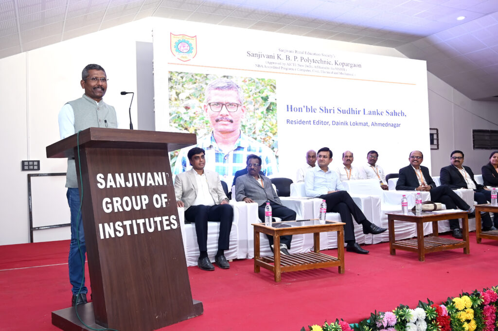 कोपरगाव प्रतिनिधी:- स्व. शंकरराव कोल्हे यांनी स्थापन केलेली ही संस्था आहे. ग्रामीण भागातील विद्यार्थ्यांना पुण्या-मुंबईतील संस्थांप्रमाणे शिक्षण मिळावे, हा त्यांचा हेतू होता. त्यांचा हा हेतू मॅनेजींग ट्रस्टी श्री अमित कोल्हे यांनी सफल करून दाखविला आहे. चांगले तंत्रज्ञ, अभियंते घडविणे, हा त्यांचा उद्देश आहे, त्यामुळे संजीवनी ग्रुप ऑफ इन्स्टिट्यूट्सला मी, व्हीजनरी इन्स्टिटयूट मानतो, असे गौरौद्गार अहमदनगर लोकमतचे निवासी संपादक श्री सुधीर लंके यांनी काढले.