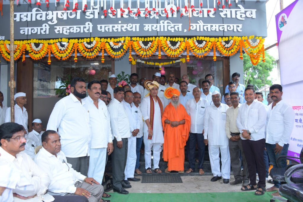 फोटो ओळ – पद्मविभूषण डॉ. शरदचंद्रजी पवार साहेब नागरी सहकारी पतसंस्थेच्या द्वितीय शाखेचा शुभारंभ प्रसंगी प.पू. श्री रमेशगिरीजी महाराज,आ.आशुतोष काळेव मान्यवर.