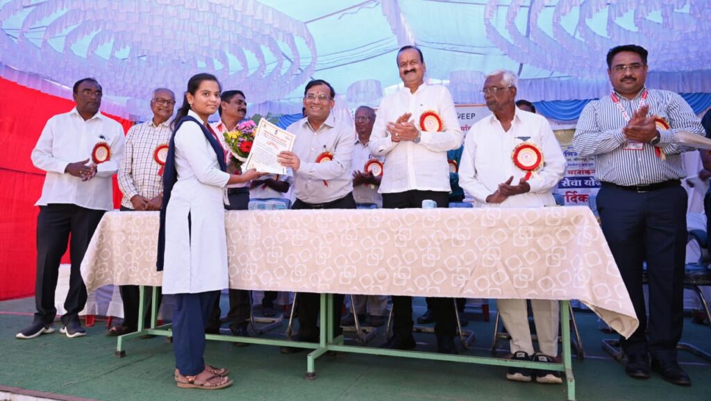 लोकसभा सार्वत्रिक निवडणुकीत स्वयंसेवक म्हणून मोलाची कामगिरी पार पडलेल्या विद्यार्थ्यांचा डॉ.कुलकर्णी यांच्या हस्ते सन्मानपत्र देऊन गौरव करण्यात आला. तसेच नव मतदारांना मतदान ओळ्खपत्राचे प्रातिनिधिक स्वरूपात वितरणही करण्यात आले.
