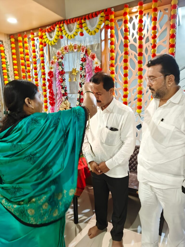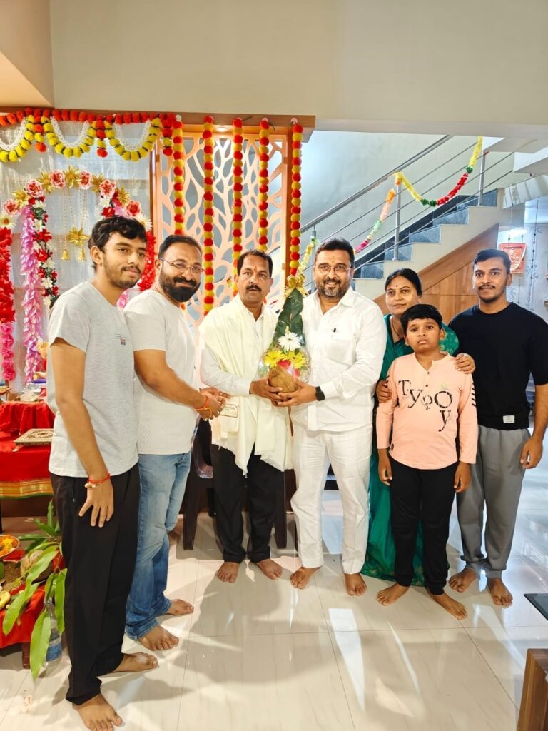 गेल्या लोकसभा निवडणुकीत अत्यंत चुरशीच्या ठरलेल्या नाशिक जिल्ह्यातील दिंडोरी लोकसभा निवडणुकीत खासदार भास्करराव भगरे सर यांनी भाजपच्या केंद्रीय मंत्री भारती पवार यांचा मोठ्या मताधिक्याने पराभव करत संपूर्ण देशभरात चर्चेला गेले होते. त्यांच्या वैयक्तिक कामानिमित्त कोपरगाव येथून जात असताना त्यांनी ॲड.संदीप वर्पे यांच्या निवासस्थानी सदिच्छा भेट देत वर्पे यांच्या घरी विराजमान झालेल्या श्री गणरायाचे मनोभावे दर्शन घेतले.