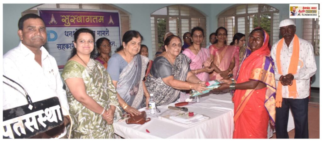 कोपरगाव प्रतिनिधी- येथील धनश्री नागरी सह महिला पतसंस्थेच्या वतीने वार्षिक सर्वसाधारण सभेच्या निमित्ताने मंजूर येथील सौ. ताराबाई पवार यांनी गोदावरी नदीच्या पात्रात बुडणाऱ्या दोन भावांचा जीव वाचविण्यासाठी आपला जीव धोक्यात घालून त्यांना वाचविले होते. अशा धाडसी व्यक्तीमत्वाची इतरांना प्रेरणा मिळावी म्हणून पतीपत्नीचा यथोचित सन्मान करतांना सौ. शिलाताई कुदळे समवेत बॅंकेचे संचालिका व व्यवस्थापक बावके साहेब.