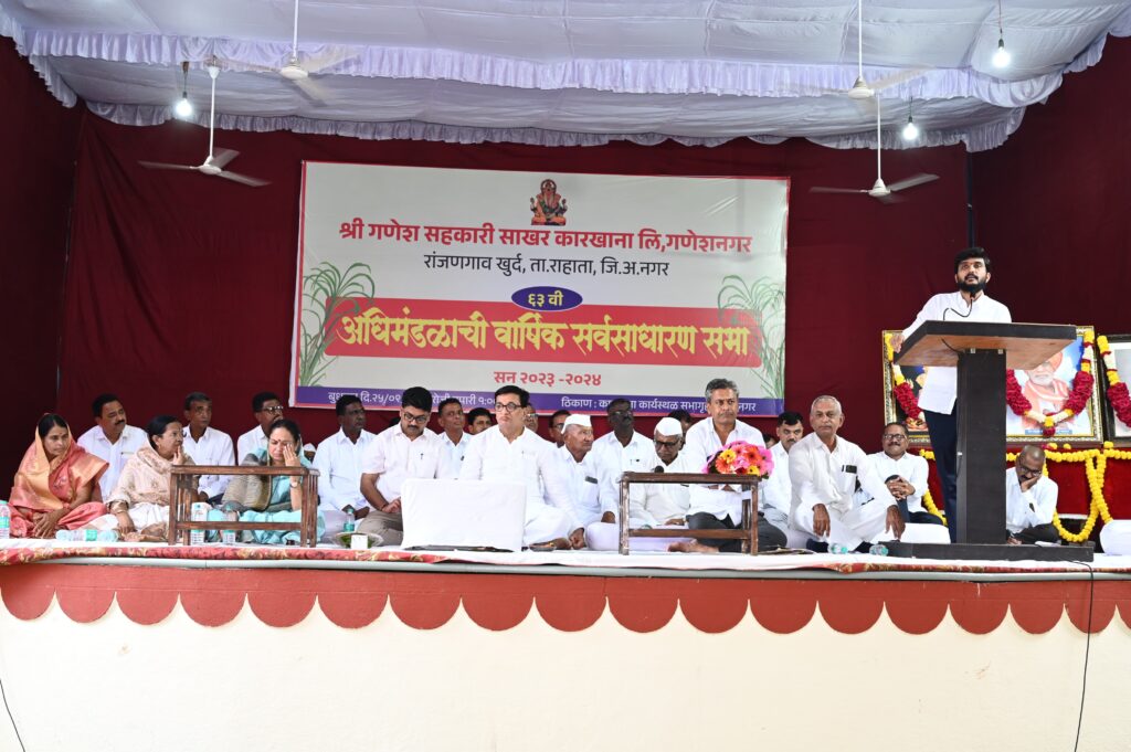 श्री गणेश सहकारी साखर कारखाना ६३ वी वार्षिक सर्वसाधारण सभा मोठ्या उत्साहात संपन्न झाली. माजी महसूलमंत्री आ.बाळासाहेब थोरात,जिल्हा बँकेचे संचालक युवानेते विवेकभैय्या कोल्हे,प्रभावतीताई घोगरे,चेअरमन सुधीर लहारे, व्हा.चेअरमन विजय दंडवते व सर्व आजी माजी संचालक मंडळ,लताताई डांगे,सुधीर म्हस्के, गंगाधर चौधरी, शिवाजी लहारे,चंद्रभान गुंजाळ,नानासाहेब गव्हाणे,चंद्रभान धनवटे, सर्जेराव जाधव,बलराज धनवटे,महेंद्र शेळके,रामचंद्र बोठे,उत्तम मते,भाऊसाहेब थेटे, संजय सरोदे,डॉ.वसंत लबडे, उत्तमराव घोरपडे,प्रकाश मोठे,अविनाश दंडवते,विक्रांत दंडवते आदींसह अधिकारी,सभासद,शेतकरी मान्यवर मोठ्या संख्येने उपस्थित होते.गणेश सहकारी साखर कारखाना अनेक अडचणीतून मात करून पुढे जात आहे.आर्थिक घडी बसविताना संजीवनी आणि संगमनेर यांची मदत असेलच, त्यामुळे येणाऱ्या हंगामात गतवर्षी पेक्षा अधिक चांगले गाळप करण्यात कारखाना यशस्वी होईल असा विश्वास यावेळी व्यक्त करण्यात आला.