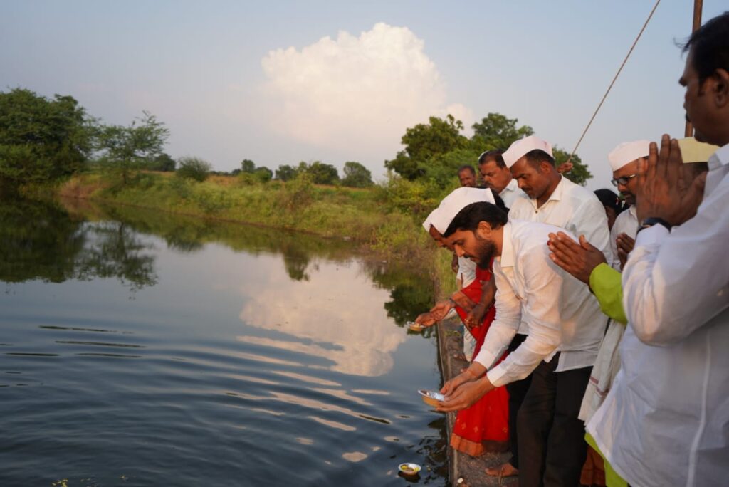 एकूण चार साठवण बंधारे पालखेड कालवा चारी नंबर ५१ वरून भरून देण्यात आले, या बंधाऱ्यांचे जलपूजन युवानेते विवेकभैय्या कोल्हे यांच्या हस्ते करण्यात आले.यावेळी रवींद्र शिंदे,सुरेश शिंदे,ज्ञानेश्वर शिंदे यांनी सपत्नीक विधिवत जलपूजा केली.