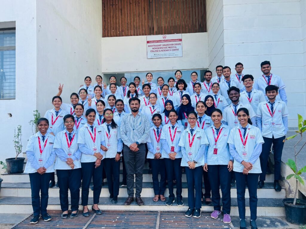 कोपरगाव प्रतिनिधी :- महाराष्ट्र आरोग्य विज्ञान विद्यापीठांतर्गत घेण्यात आलेल्या प्रथम वर्षाच्या वार्षिक परिक्षेत राष्ट्रसंत जनार्दन स्वामी होमिओपॅथीक मेडिकल कॉलेज, कोकमठाण येथील विद्यार्थ्यांनी ५९% गुण मिळवून घवघवीत यश मिळविले.सी.बी.डी.सी. पध्दतीनुसार विद्यापीठाने एन सी एच् च्या नियमानुसार परिक्षा घेण्याची ही पहिलीच वेळ होती. त्या पध्दतीनुसार कॉलेजचा निकाल ८६ % लागला असुन ८८ पैकी ७५ विद्यार्थी उत्तीर्ण झाले तर १० विद्यार्थी ए टी के टी लागून द्वितीय वर्षात प्रवेश पात्र आहेत.भक्ती आहेर, प्रतिक्षा धोकरट, रिषभ तिवारी हे गुणवत्ता यादीतील पहिले तीन विद्यार्थी आहेत.सर्व उत्तीर्ण विद्यार्थ्यांचे संस्थेचे संस्थापक चांगदेव कातकडे, सचिव प्रसाद कातकडे, विजय कडू, दीपक कोटमे तसेच कॉलेजचे प्राचार्य डाॅ.नितीन राऊत व शिक्षक, शिक्षकेतर कर्मचारी यांनी विद्यार्थ्यांचे अभिनंदन केले.