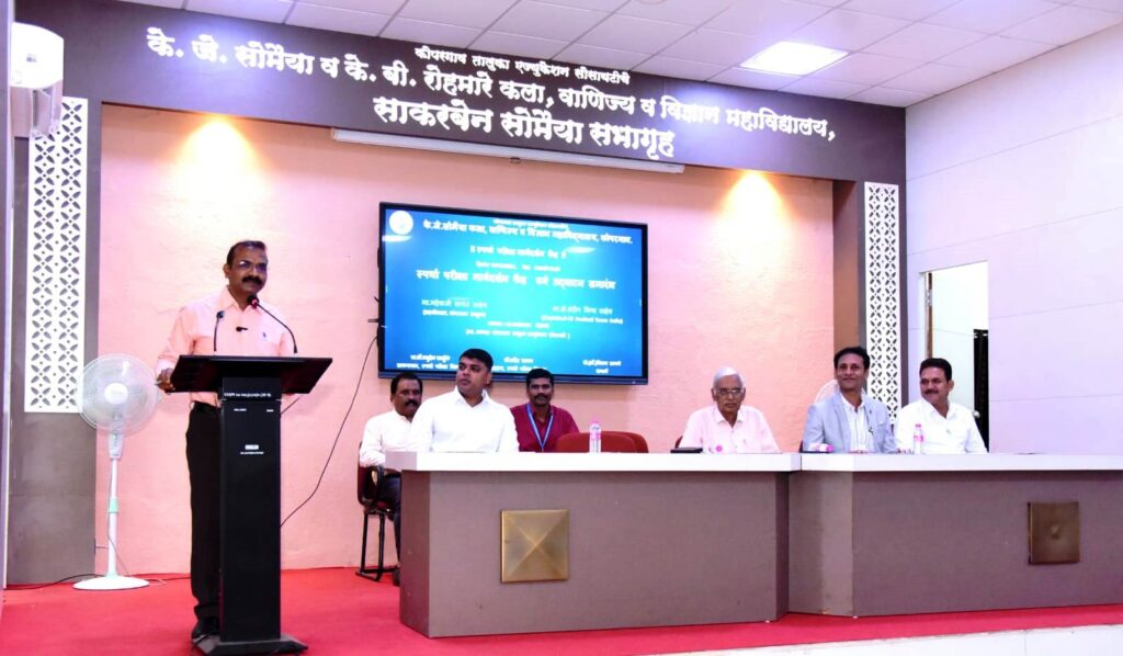 “मार्गदर्शनापेक्षा मला तरुण पिढीशी अनौपचारिक संवाद नेहमीच आवडतो. स्पर्धा परीक्षेचा कधीच बाऊ करू नका. बाऊ करण्यापेक्षा अभ्यासपूर्ण नियोजन अधिक महत्त्वाचे आहे. जगाशी स्पर्धा करण्याऐवजी आधी स्वतःशी स्पर्धा करा. ती केली की तुम्ही जिंकलेच समजा.” असे प्रतिपादन कोपरगावचे नवनियुक्त तहसीलदार मा. महेश सावंत यांनी येथे केले. स्थानिक के. जे. सोमैया वरिष्ठ व के बी रोहमारे कनिष्ठ महाविद्यालयाच्या अंतर्गत गुणवत्ता हमी कक्षाच्या वतीने आयोजित स्पर्धा परीक्षा केंद्राच्या उद्घाटन समारंभात ते उद्घाटक म्हणून बोलत होते. अध्यक्षस्थानी को. ता. एज्यु. सोसायटीचे अध्यक्ष मा. अशोकराव रोहमारे होते.