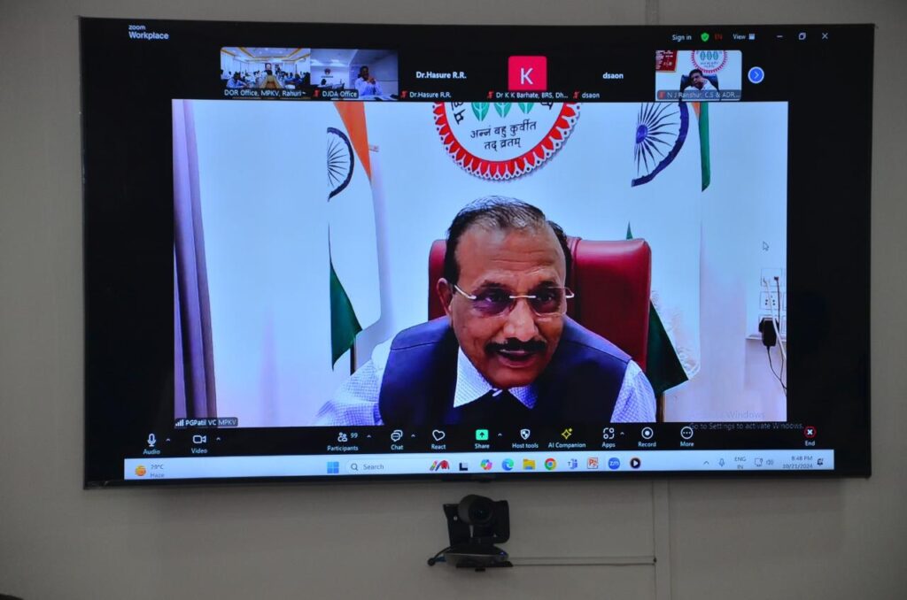 महात्मा फुले कृषि विद्यापीठ, राहुरी व कृषि विभाग, महाराष्ट्र शासन यांच्या संयुक्त विद्यमाने महात्मा फुले कृषि विद्यापीठात विभागीय कृषि संशोधन व विस्तार सल्लागार समिती बैठक रब्बी व उन्हाळी-2024 चे आयोजन हायब्रीड मोडमध्ये करण्यात आले होते. या बैठकीच्या अध्यक्षस्थानावरुन कुलगुरू डॉ. पी.जी. पाटील बोलत होते. यावेळी संशोधन संचालक श्री. विठ्ठल शिर्के, विस्तार शिक्षण संचालक डॉ. गोरक्ष ससाणे, कृषि संचालक श्री. रफिक नाईकवडी, कोल्हापूरचे विभागीय कृषि सहसंचालक श्री. उमेश पाटील, नाशिकचे विभागीय कृषि सहसंचालक श्री. सुभाष काटकर, पुणे विभागीय कृषि सहसंचालक श्री दत्तात्रय गवसाने, पदव्युत्तर महाविद्यालयाचे सहयोगी अधिष्ठाता डॉ. साताप्पा खडबडे व सहयोगी संशोधन संचालक डॉ. विजय शेलार उपस्थित होते.