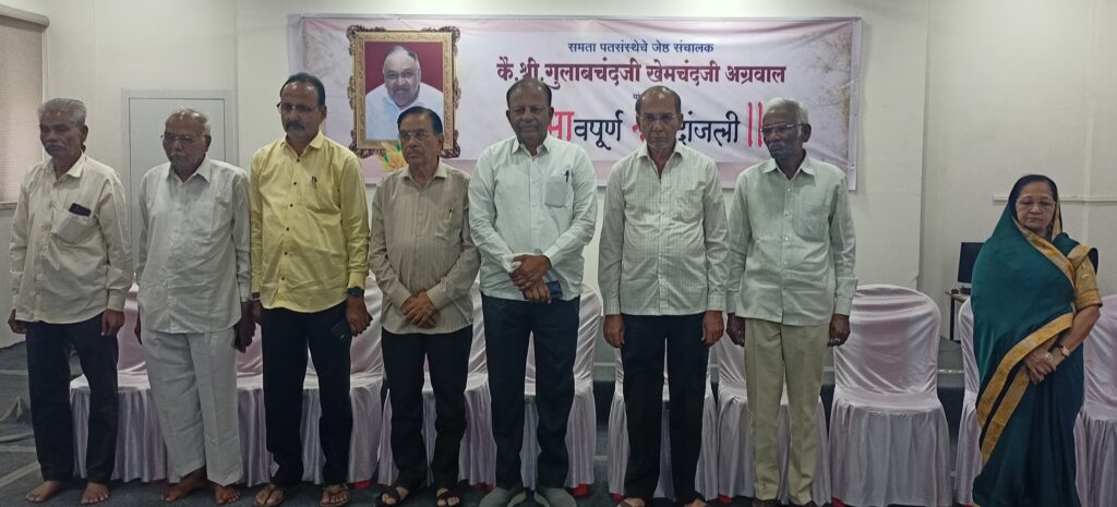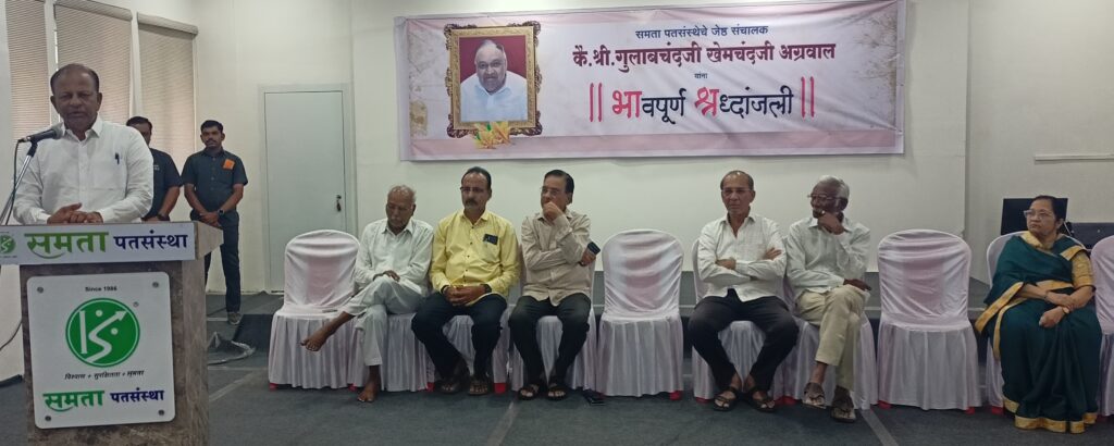 समता नागरी सहकारी पतसंस्थेचे जेष्ठ व श्रेष्ठ संचालक गुलाबचंद खेमचंद अग्रवाल यांना भावपूर्ण श्रद्धांजली समता परिवाराच्या वतीने वाहण्यात आली. त्या वेळी ते बोलत होते.