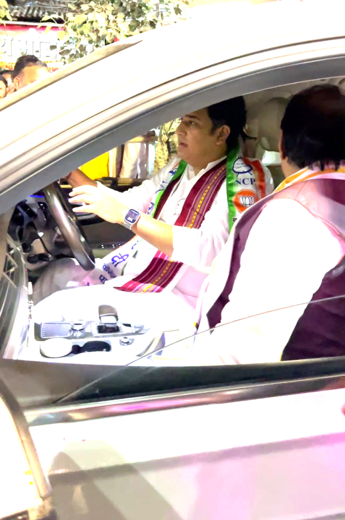 कोळपेवाडी वार्ताहर :- विधानसभा निवडणुकीच्या निमित्ताने आ.आशुतोष काळेंच्या प्रचारार्थ आयोजित करण्यात आलेल्या प्रचार सभेसाठी उपमुख्यमंत्री ना.अजितदादा पवार हे गुरुवार (दि.१४) रोजी कोपरगाव येथे आले होते. एस.एस.जी. एम.कॉलेजच्या मैदानावर तयार करण्यात आलेल्या हेलीपॅडवर त्यांच्या हेलिकॉप्टरचे लँडिंग होवून त्यांनी हेलिकॉप्टरमधून मधून उतरताच गाडीत बसून येसगावच्या दिशेने कोल्हे वस्तीकडे प्रयाण करून कोल्हे परिवाराची सदिच्छा भेट घेतली यावेळी या प्रवासादरम्यान आ.आशुतोष काळे यांनी स्वत: त्यांच्या गाडीचे सारथ्य केले.
