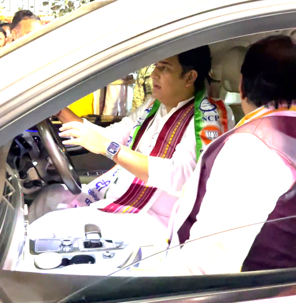 कोळपेवाडी वार्ताहर :- विधानसभा निवडणुकीच्या निमित्ताने आ.आशुतोष काळेंच्या प्रचारार्थ आयोजित करण्यात आलेल्या प्रचार सभेसाठी उपमुख्यमंत्री ना.अजितदादा पवार हे गुरुवार (दि.१४) रोजी कोपरगाव येथे आले होते. एस.एस.जी. एम.कॉलेजच्या मैदानावर तयार करण्यात आलेल्या हेलीपॅडवर त्यांच्या हेलिकॉप्टरचे लँडिंग होवून त्यांनी हेलिकॉप्टरमधून मधून उतरताच गाडीत बसून येसगावच्या दिशेने कोल्हे वस्तीकडे प्रयाण करून कोल्हे परिवाराची सदिच्छा भेट घेतली यावेळी या प्रवासादरम्यान आ.आशुतोष काळे यांनी स्वत: त्यांच्या गाडीचे सारथ्य केले.
