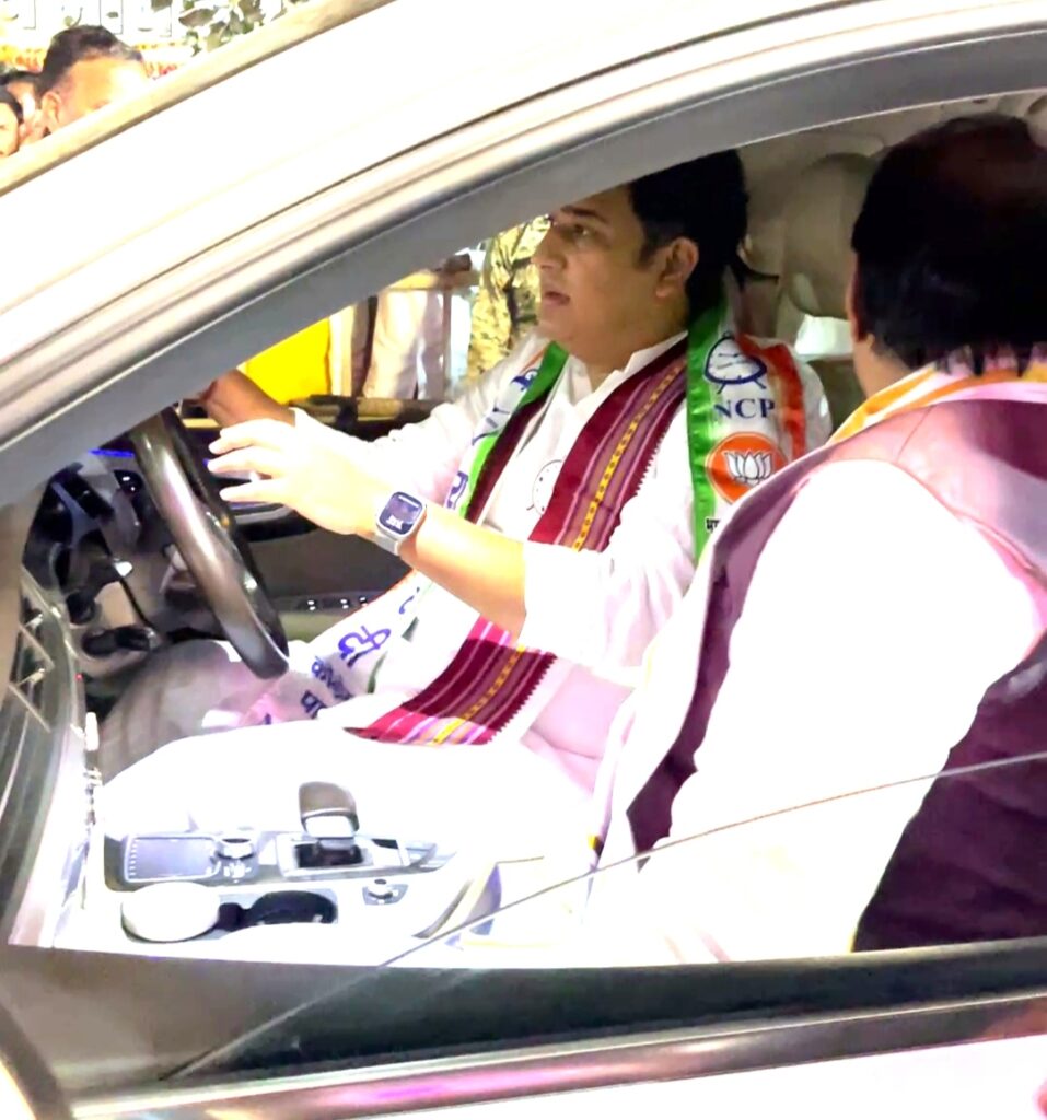 कोळपेवाडी वार्ताहर :- विधानसभा निवडणुकीच्या निमित्ताने आ.आशुतोष काळेंच्या प्रचारार्थ आयोजित करण्यात आलेल्या प्रचार सभेसाठी उपमुख्यमंत्री ना.अजितदादा पवार हे गुरुवार (दि.१४) रोजी कोपरगाव येथे आले होते. एस.एस.जी. एम.कॉलेजच्या मैदानावर तयार करण्यात आलेल्या हेलीपॅडवर त्यांच्या हेलिकॉप्टरचे लँडिंग होवून त्यांनी हेलिकॉप्टरमधून मधून उतरताच गाडीत बसून येसगावच्या दिशेने कोल्हे वस्तीकडे प्रयाण करून कोल्हे परिवाराची सदिच्छा भेट घेतली यावेळी या प्रवासादरम्यान आ.आशुतोष काळे यांनी स्वत: त्यांच्या गाडीचे सारथ्य केले.