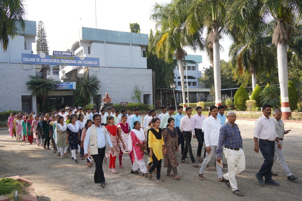 याप्रसंगी कृषि अभियांत्रिकी महाविद्यालयातील कृषि प्रक्रिया विभाग प्रमुख तथा राष्ट्रीय सेवा योजनेचे कार्यक्रम अधिकारी डॉ. कैलास कांबळे यांनी उपस्थितांना मतदानाबाबत व आदर्श आचारसंहितेच्या पालनाबाबात मार्गदर्शन केले. याप्रसंगी समितीचे सदस्य डॉ. भगवान देशमुख, डॉ. सुनिल फुलसावंगे, डॉ. अधिर आहेर, विद्यापीठ क्रीडा अधिकारी डॉ. विलास आवारी, प्राध्यापक, अधिकारी व कर्मचारी उपस्थित होते. रॅलीची सुरूवात कृषि अभियांत्रिकी महाविद्यालयापासून मतदान जागृतीच्या घोषणा देत पदव्युत्तर महाविद्यालयाच्या प्रांगणावर आली व आभार झाल्यानंतर राष्ट्रगीताने रॅलीची सांगता करण्यात आली.