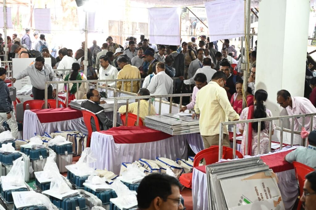 शिर्डी विधानसभा मतदारसंघात १०८ ठिकाणी असलेल्या २७१ मतदान केंद्रावर १ हजार ६०० अधिकारी – कर्मचाऱ्यांचे मतदान पथकांना राहाता तालुका प्रशासकीय भवन येथे उभारण्यात आलेल्या २१ टेबलच्या माध्यमातून बॅलेट युनिट, कंट्रोल युनिट व ईव्हीएमसह मतदान साहित्याचे वाटप करण्यात आले. २८ बसेस व ७८ जीप मधून मतदान पथके मतदान केंद्रावर रवाना झाले.