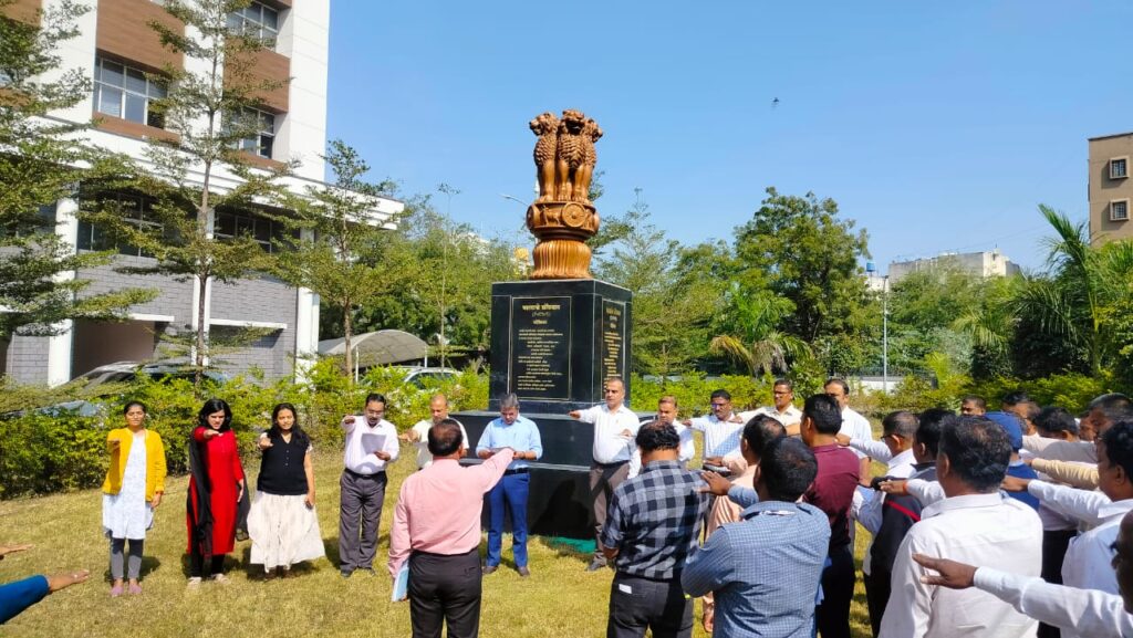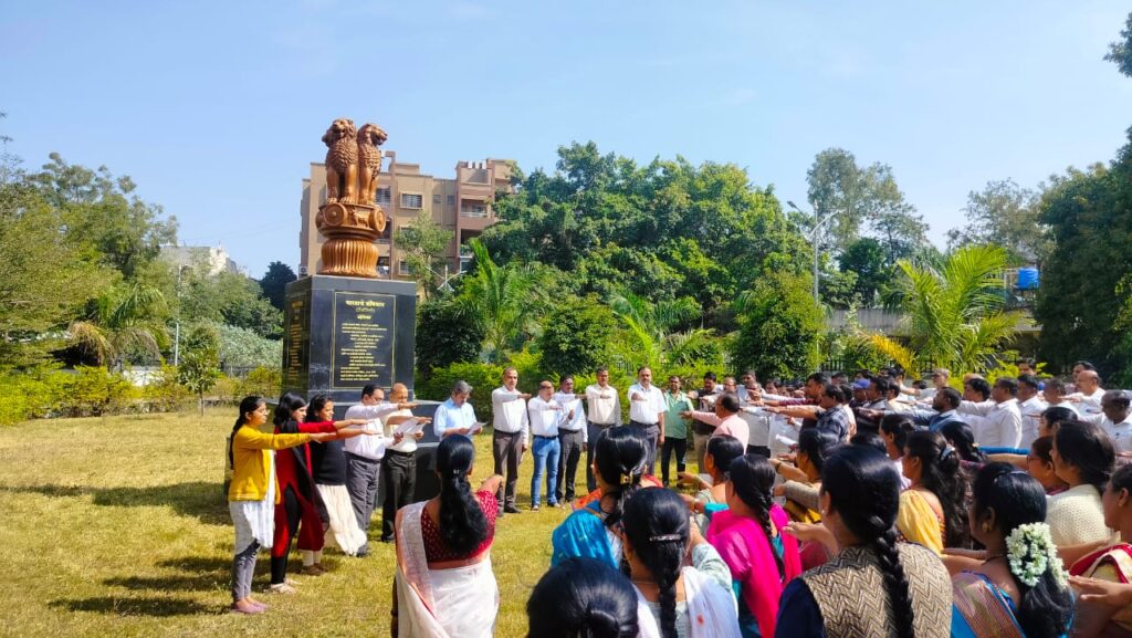 (अहिल्यानगर):- जिल्हा प्रशासनाच्यावतीने जिल्हाधिकारी कार्यालयात संविधान दिन साजरा करण्यात आला. यावेळी जिल्हाधिकारी सिद्धाराम सालीमठ यांनी भारतीय संविधानाची माहिती दिली, तसेच संविधानाच्या उद्देशीकेचे सामूहिक वाचन करण्यात आले.