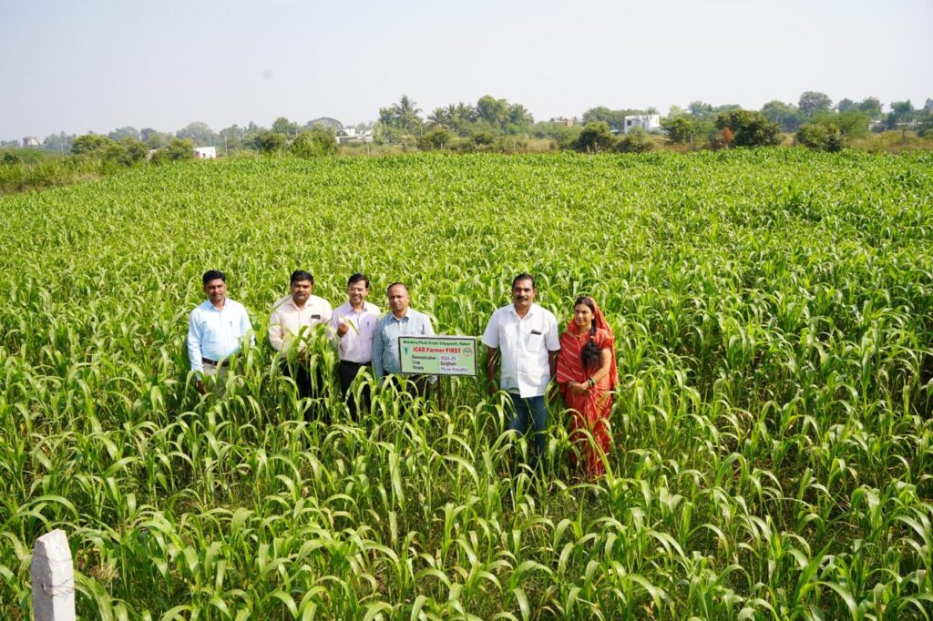 कोपरगाव प्रतिनिधी(राहुरी विद्यापीठ):- भारतीय कृषि अनुसंधान परिषद, नवी दिल्लीद्वारे शेतकरी प्रथम प्रकल्प 2016-17 साली महात्मा फुले कृषि विद्यापीठासाठी मंजूर करण्यात आला. सुरुवातीला हा प्रकल्प राहुरी तालुक्यातील चिंचविहिरे व कनगर या गावांमध्ये राबविला जात होता. सन 2021 पासून तांभेरे व कानडगाव या गावांचा या प्रकल्पात समावेश करण्यात आला. विद्यापीठाचे कुलगुरू डॉ. पी.जी. पाटील, संचालक विस्तार शिक्षण डॉ. जी.के. ससाणे व प्रकल्पाचे प्रमुख समन्वयक डॉ. पंडित खर्डे यांच्या मार्गदर्शनाखाली हा प्रकल्प राबविला जात आहे. या प्रकल्पांतर्गत विद्यापीठाने विकसित केलेल्या एकात्मिक शेती पद्धती मॉडेल शेतकर्यांच्या शेतावर राबविले जाते. या प्रकल्पामध्ये खरीप हंगामामध्ये सोयाबीन व तूर, रब्बी हंगामामध्ये ज्वारी व हरभरा तसेच डाळिंब उत्पादन, परसबागेतील कुक्कुटपालन, शेळीपालन, मुरघास व गांडूळ खत निर्मिती इत्यादी घटकांचा समावेश केला गेला आहे. खरीप हंगाम 2024-25 मध्ये सोयाबीनचे 50 एकर क्षेत्रावर तर तूर पिकाचे 25 एकर क्षेत्रावर प्रात्यक्षिके घेतली गेली तसेच रब्बीमध्ये ज्वारी पिकाचे 50 एकर क्षेत्रावर ही प्रात्यक्षिके राबविली जात आहेत. विस्तार शिक्षण संचालक डॉ. जी के ससाणे, प्रकल्प प्रमुख डॉ. पंडित खर्डे, सहसमन्वयक डॉ. सचिन सदाफळ व डॉ. भगवान देशमुख यांनी ज्वारी व तूर पीक प्रात्यक्षिकांना भेटी दिल्या. यामध्ये चिंचविहिरेतील सहभागी शेतकरी श्री. अभिजीत गिते, सौ. निर्मला गाढे, कणगर गावातील सहभागी शेतकरी श्री. प्रविण गाढे, तांभेरे गावातील श्री. सुरेश गागरे, श्री. तुकाराम निमसे, श्री. भाऊसाहेब गागरे व कानडगावातील सहभागी शेतकरी श्री. पाडुरंग गागरे, श्री. मदन गागरे, श्री. नानामहाराज गागरे यांच्या पीक प्रात्यक्षिकांना भेटी देऊन मार्गदर्शन केले. ज्वारीचे फुले रेवती व फुले वसुधा तसेच तुरीचे फुले तृप्ती या वाणांचे पीक प्रात्यक्षिके अत्यंत चांगल्या प्रकारे सहभागी शेतकर्यांद्वारे राबविली जात आहेत. सदर प्रात्यक्षिक भेटीचे नियोजन प्रकल्पाचे संशोधन सहयोगी श्री. विजय शेडगे, प्रक्षेत्र सहाय्यक श्री. राहुल कोर्हाळे आणि श्री. किरण मगर यांनी परिश्रम घेतले.