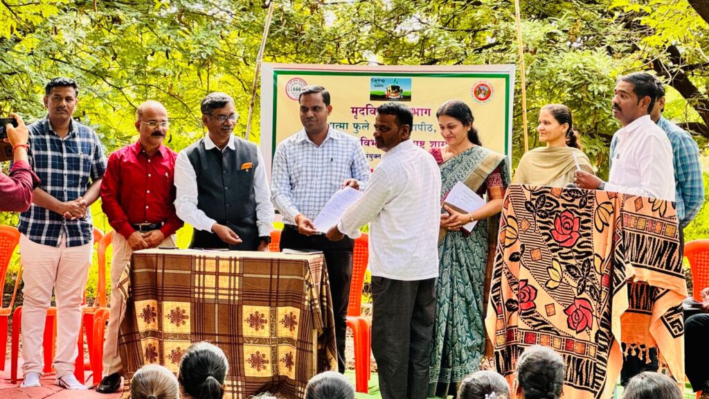 महात्मा फुले कृषि विद्यापीठ, राहुरी येथील मृद विज्ञान विभाग व कृषि विभाग, महाराष्ट्र शासन यांचे संयुक्त विद्यमाने कुलगुरु डॉ. पी.जी. पाटील यांच्या मार्गदर्शनाखाली जागतिक मृदा दिनाचे आयोजन राहुरी तालुक्यातील सडे येथील प्रगतशील शेतकरी श्री. प्रमोद धोंडे यांच्या शेतावर करण्यात आले होते. यावेळी कार्यक्रमाच्या अध्यक्षस्थानावरून डॉ. भीमराव कांबळे बोलत होते. याप्रसंगी आंतरविद्या जलसिंचन विभाग प्रमुख डॉ. विजय पाटील, मृदविज्ञान विभागाचे वरिष्ठ शास्त्रज्ञ डॉ. अनिल दुरगुडे, सहयोगी प्राध्यापक डॉ. रितू ठाकरे, डॉ. श्रीगणेश शेळके, डॉ. देविदास खेडकर, डॉ. संजय तोडमल, डॉ. सुभाष घोडके, जिल्हा मृद सर्वेक्षण व मृद चाचणी अधिकारी श्रीमती कांचन तागड, श्रीरामपूरचे उपविभागीय कृषि अधिकारी श्री. प्रविण गोसावी, वरिष्ठ संशोधन सहाय्यक श्री. दादासाहेब धोंडे व राहुरीचे तालुका कृषि अधिकारी श्री. बापूसाहेब शिंदे उपस्थित होते.
